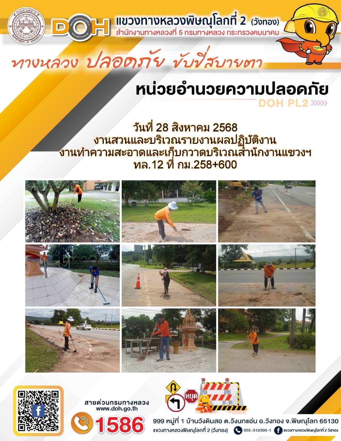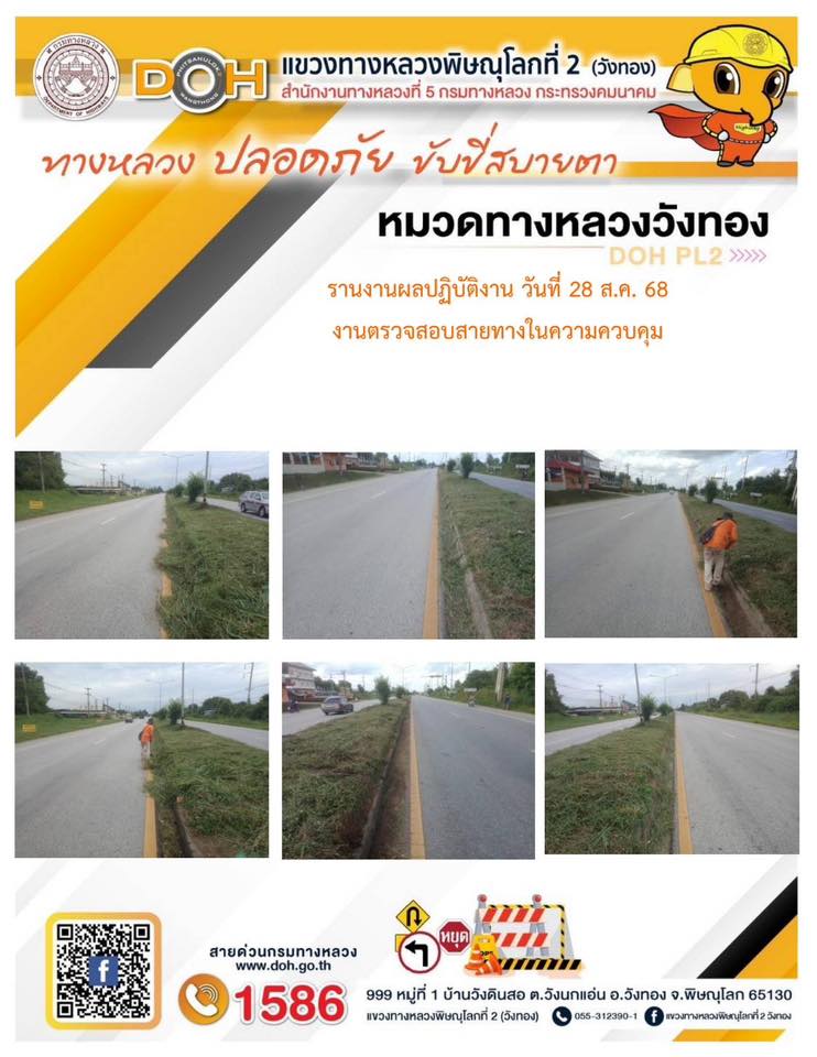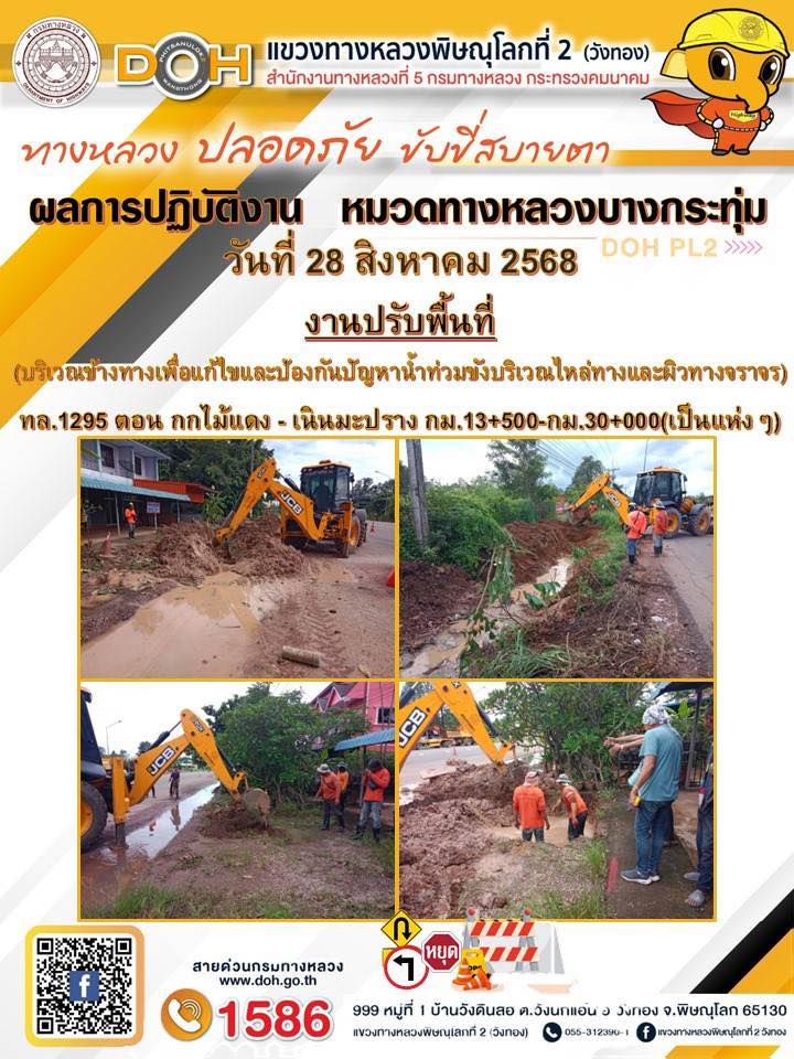 การปฏิบัติงานของ หมวดทางหลวง และ หน่วยงานในสังกัด เพื่ออำนวยความสะดวก และปลอดภัยให้กับประชาชนผู้ใช้เส้นทาง ประจำวันพฤหัสบดี ที่ 28 สิงหาคม 2568