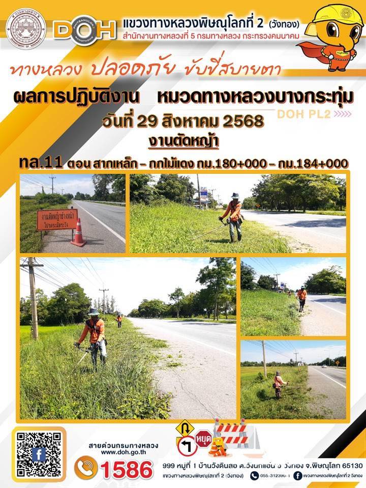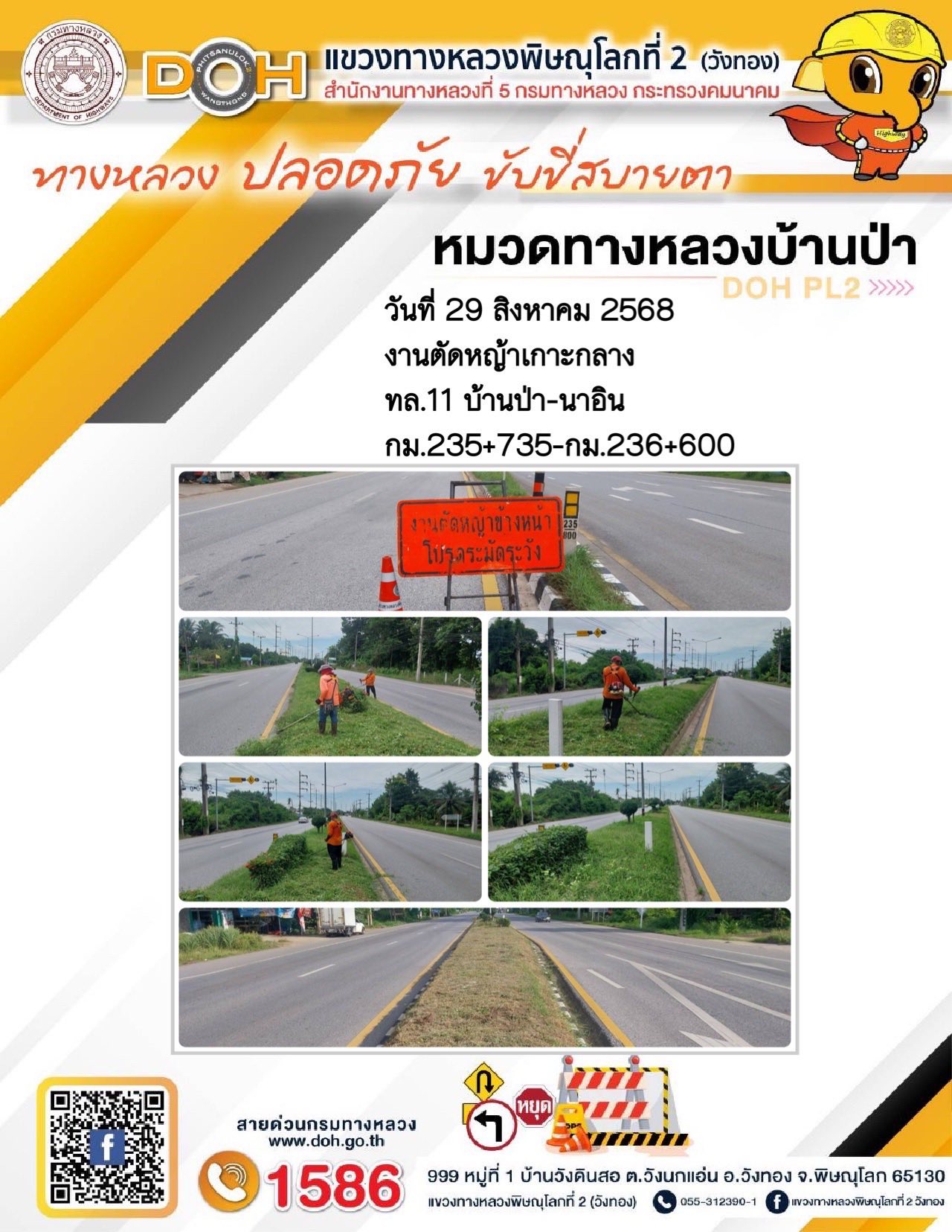การปฏิบัติงานของ หมวดทางหลวง และ หน่วยงานในสังกัด เพื่ออำนวยความสะดวก และปลอดภัยให้กับประชาชนผู้ใช้เส้นทาง ประจำวันศุกร์ ที่ 29 สิงหาคม 2568