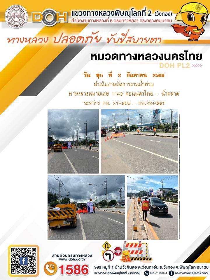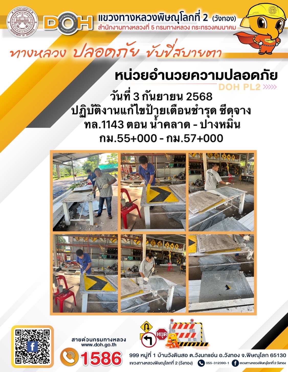 การปฏิบัติงานของ หมวดทางหลวง และ หน่วยงานในสังกัด เพื่ออำนวยความสะดวก และปลอดภัยให้กับประชาชนผู้ใช้เส้นทาง ประจำวันพุธ ที่ 3 กันยายน 2568