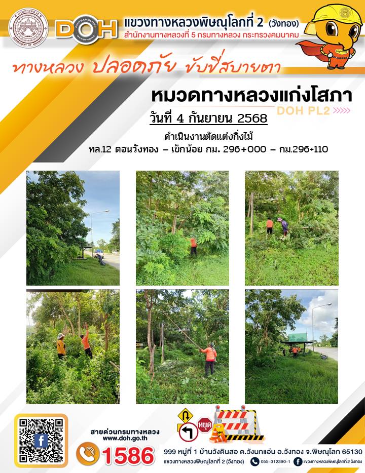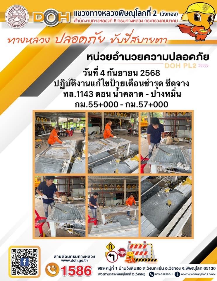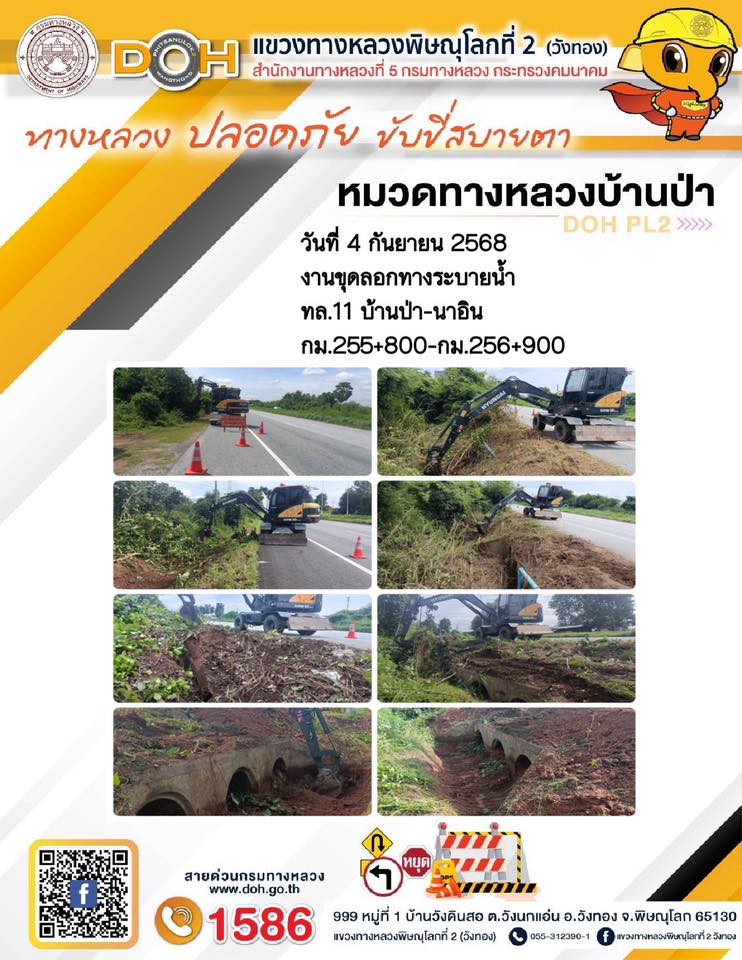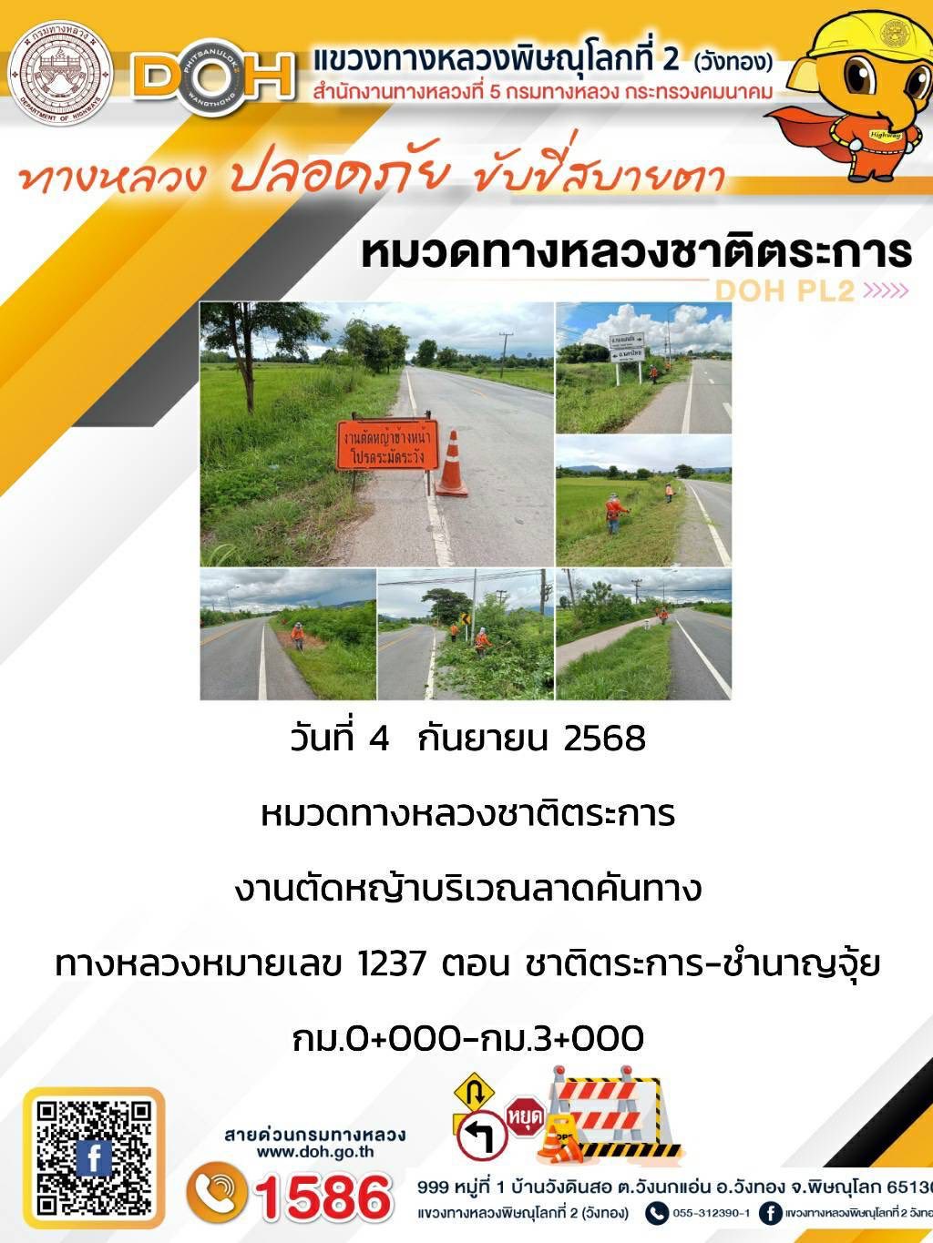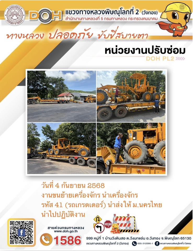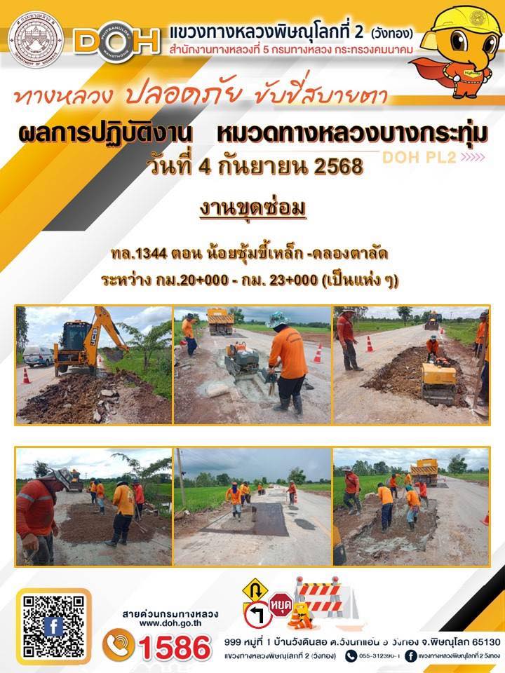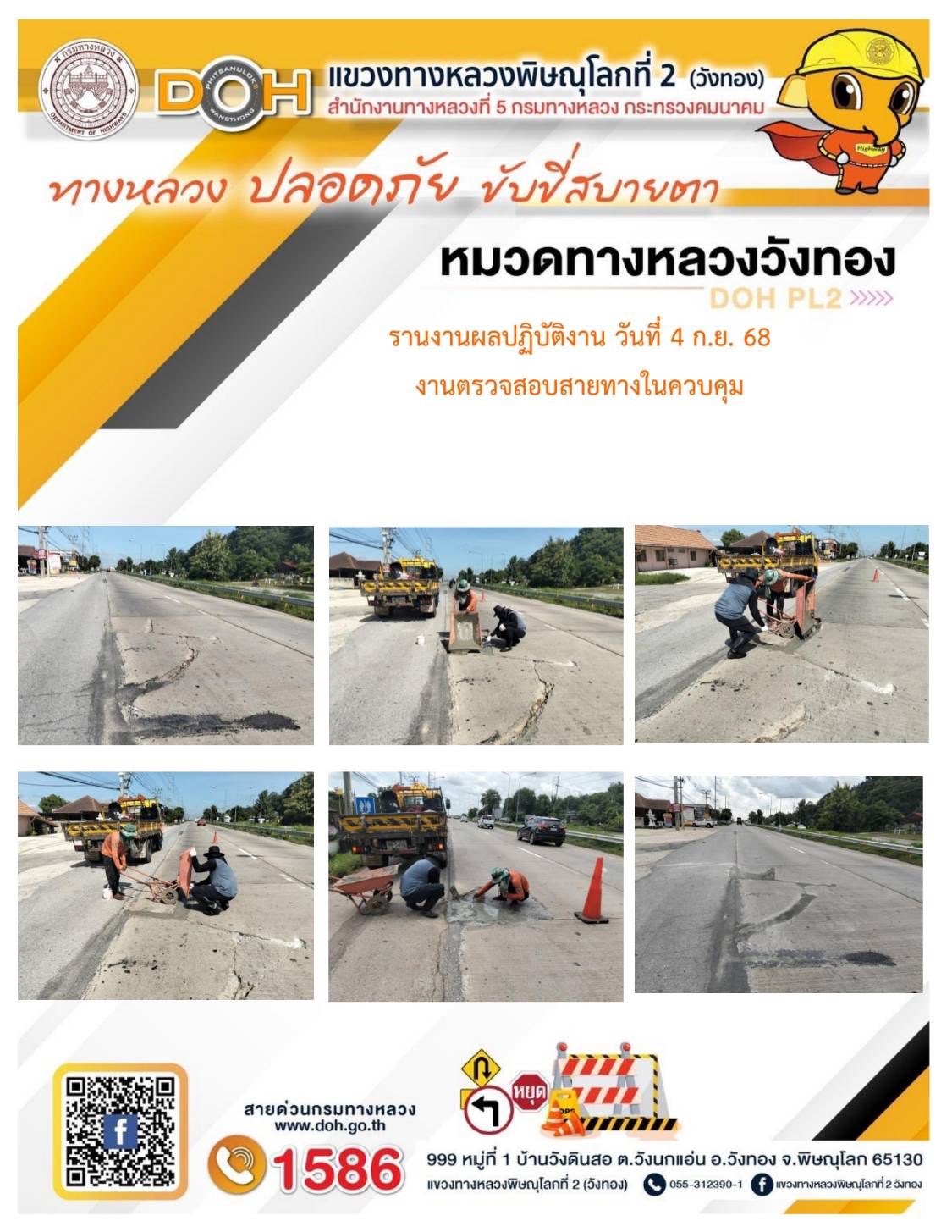 การปฏิบัติงานของ หมวดทางหลวง และ หน่วยงานในสังกัด เพื่ออำนวยความสะดวก และปลอดภัยให้กับประชาชนผู้ใช้เส้นทาง ประจำวันพฤหัสบดี ที่ 4 กันยายน 2568
