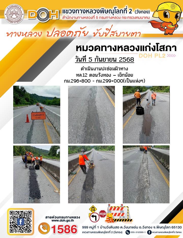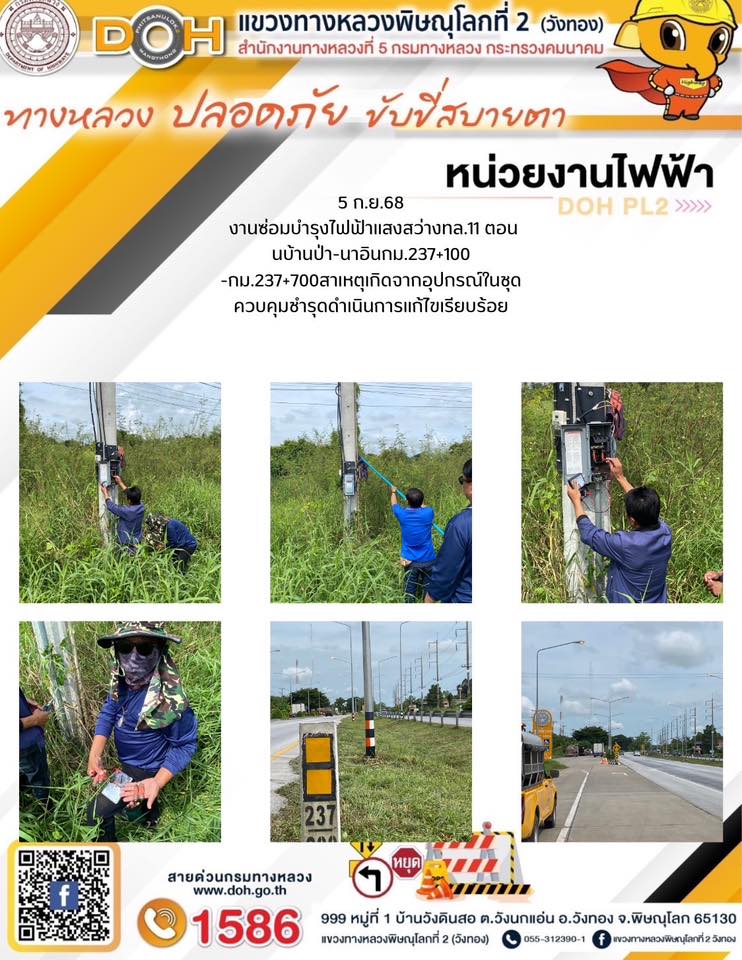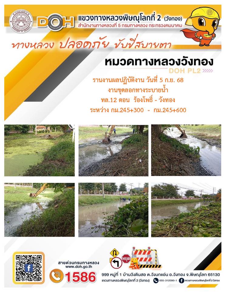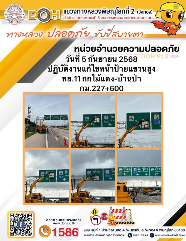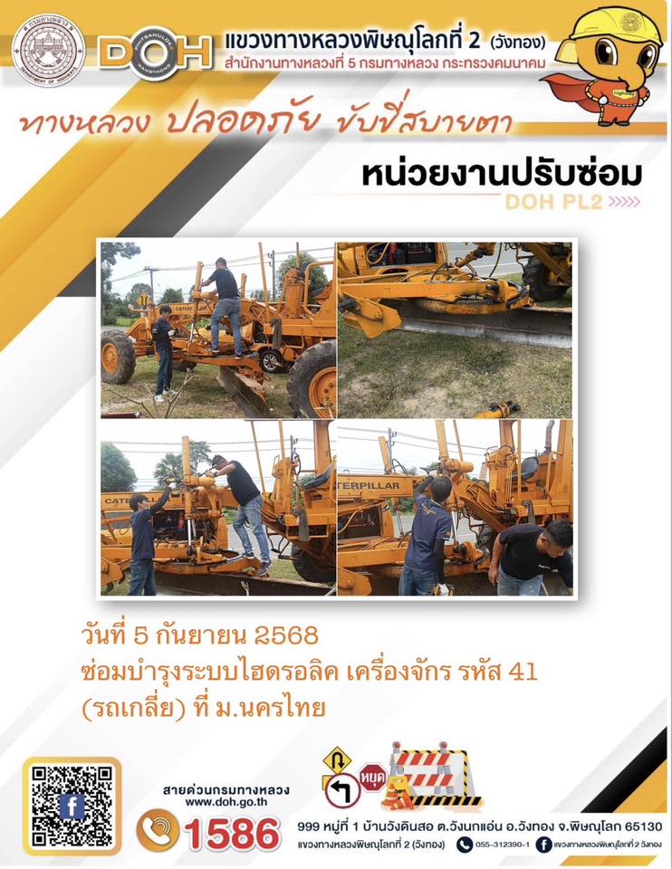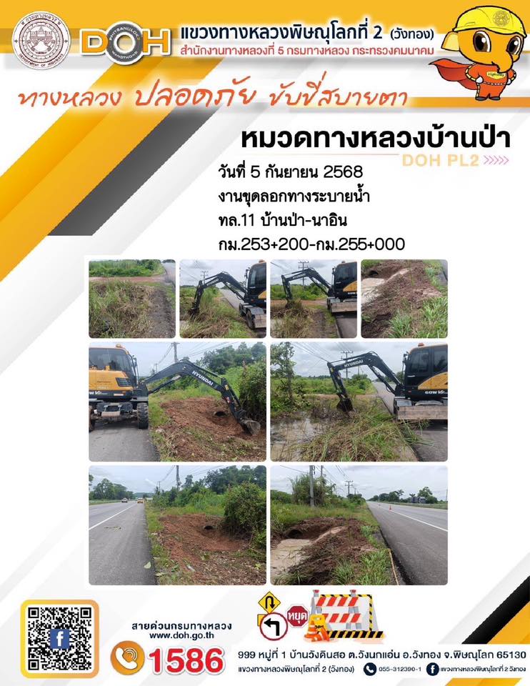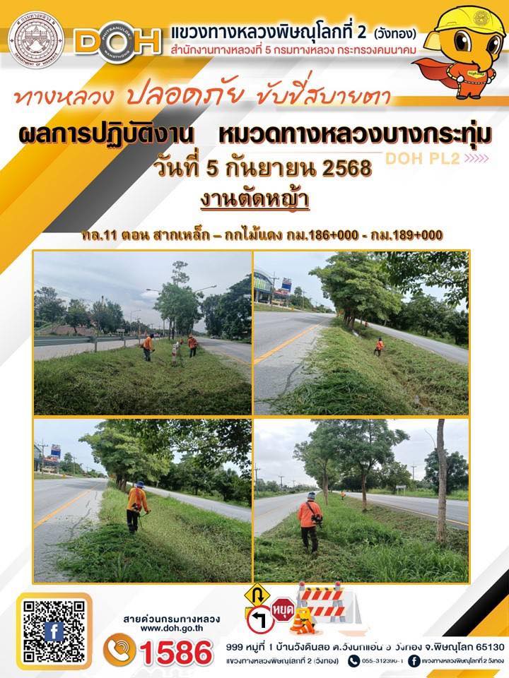 การปฏิบัติงานของ หมวดทางหลวง และ หน่วยงานในสังกัด เพื่ออำนวยความสะดวก และปลอดภัยให้กับประชาชนผู้ใช้เส้นทาง ประจำวันศุกร์ ที่ 5 กันยายน 2568