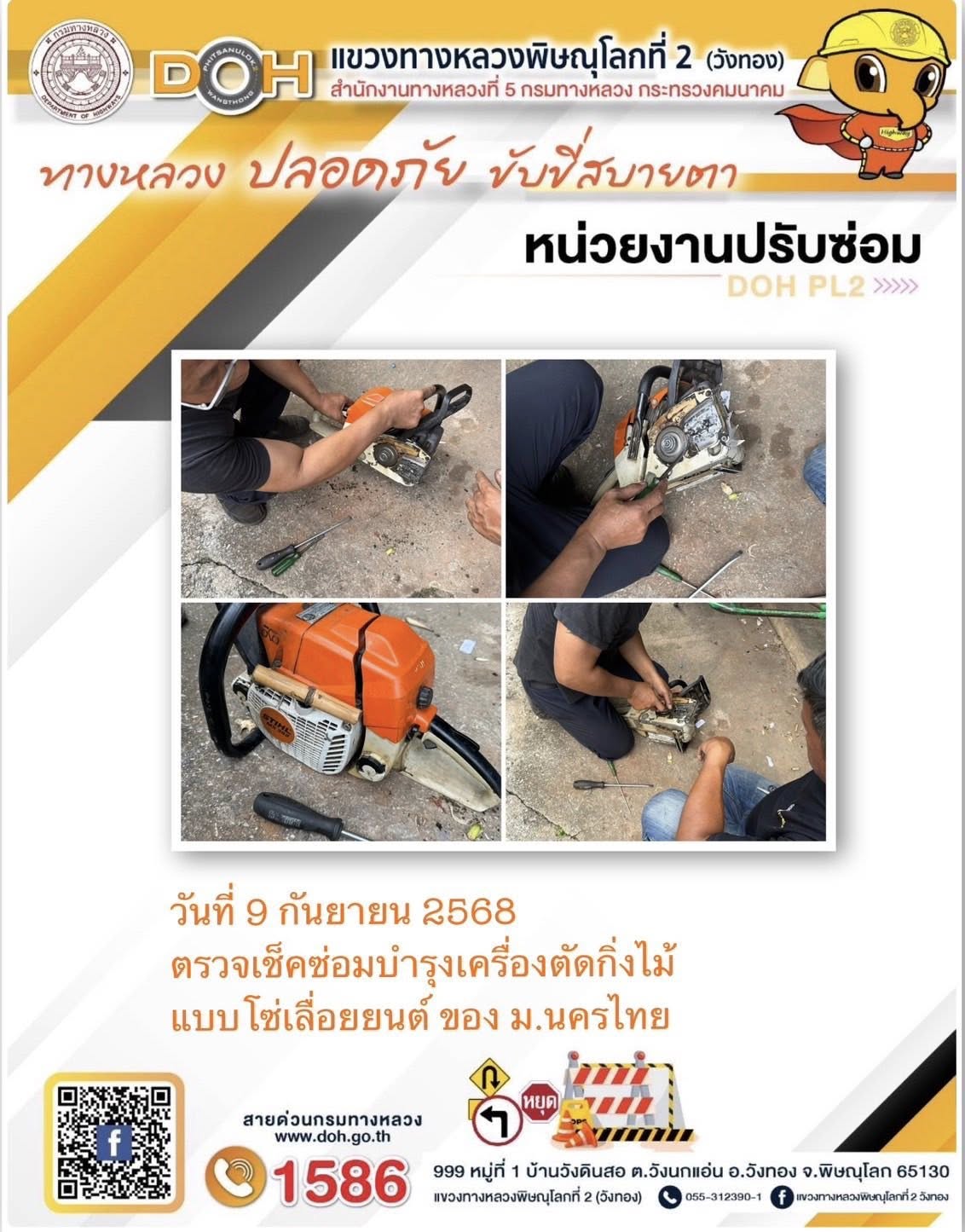 การปฏิบัติงานของ หมวดทางหลวง และ หน่วยงานในสังกัด เพื่ออำนวยความสะดวก และปลอดภัยให้กับประชาชนผู้ใช้เส้นทาง ประจำวันอังคาร ที่ 9 กันยายน 2568