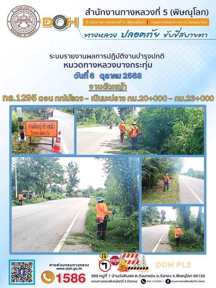 การปฏิบัติงานของ หมวดทางหลวง และ หน่วยงานในสังกัด เพื่ออำนวยความสะดวก และปลอดภัยให้กับประชาชนผู้ใช้เส้นทาง ประจำวันจันทร์ ที่ 6 ตุลาคม 2568