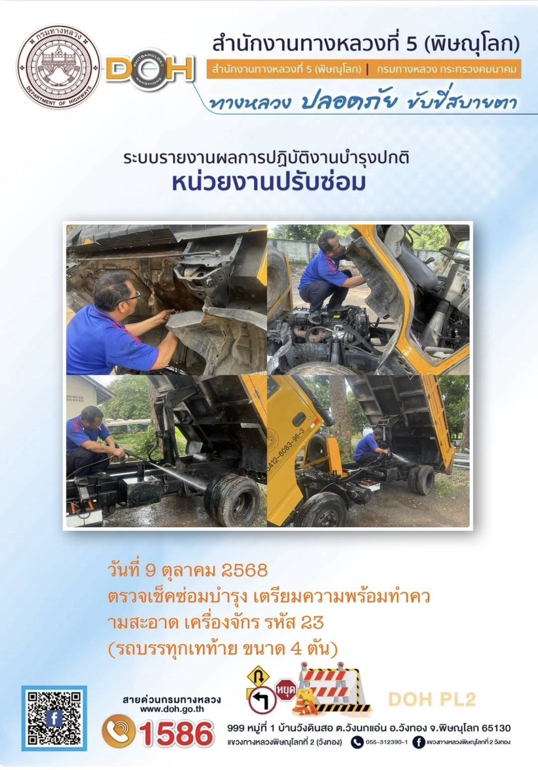 การปฏิบัติงานของ หมวดทางหลวง และ หน่วยงานในสังกัด เพื่ออำนวยความสะดวก และปลอดภัยให้กับประชาชนผู้ใช้เส้นทาง ประจำวันพฤหัสบดี ที่ 9 ตุลาคม 2568