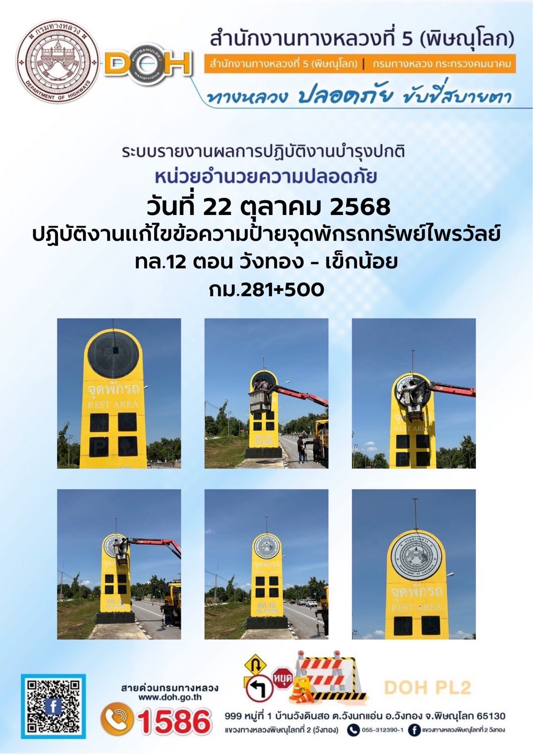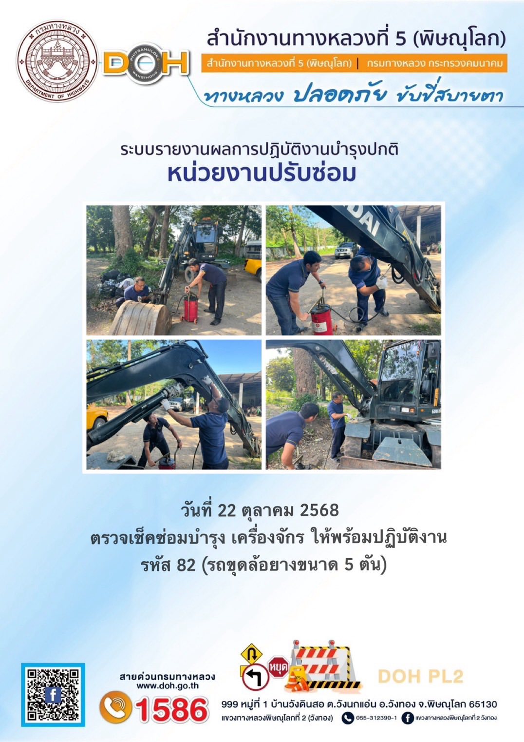 การปฏิบัติงานของ หมวดทางหลวง และ หน่วยงานในสังกัด เพื่ออำนวยความสะดวก และปลอดภัยให้กับประชาชนผู้ใช้เส้นทาง ประจำวันพุธ ที่ 22 ตุลาคม 2568