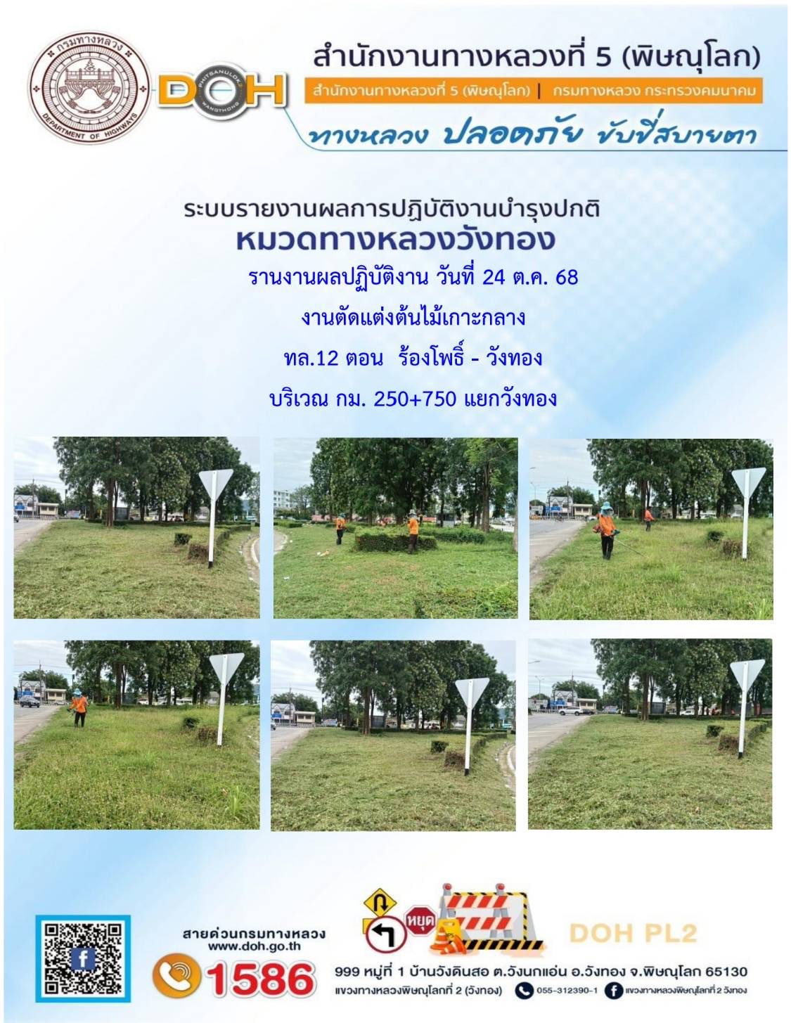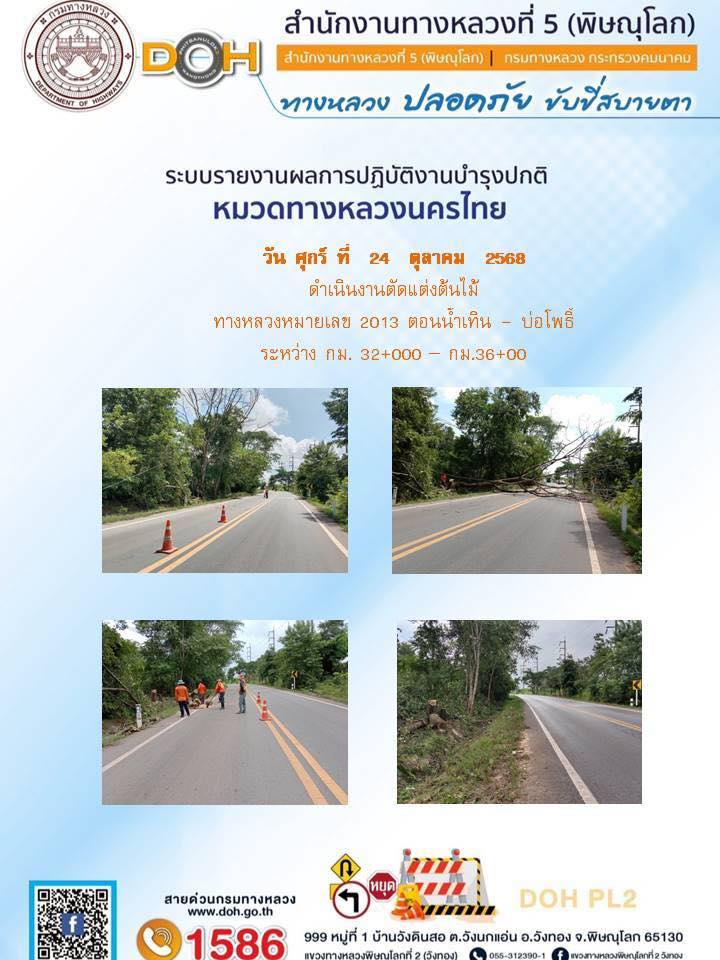 การปฏิบัติงานของ หมวดทางหลวง และ หน่วยงานในสังกัด เพื่ออำนวยความสะดวก และปลอดภัยให้กับประชาชนผู้ใช้เส้นทาง ประจำวันศุกร์ ที่ 24 ตุลาคม 2568