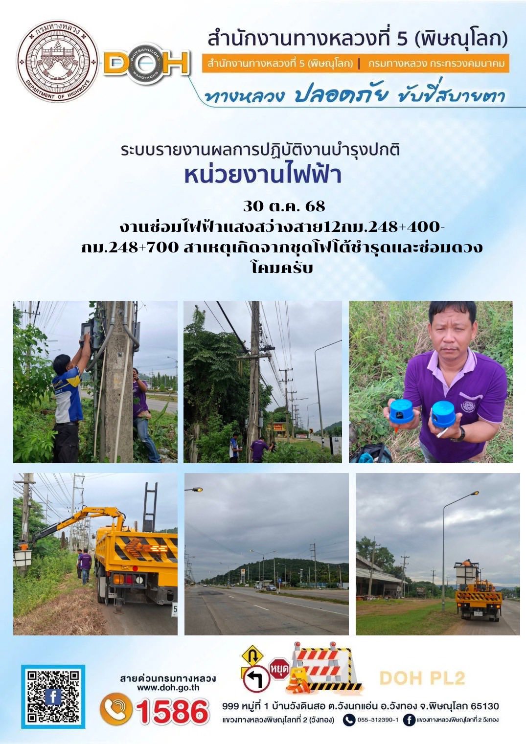 การปฏิบัติงานของ หมวดทางหลวง และ หน่วยงานในสังกัด เพื่ออำนวยความสะดวก และปลอดภัยให้กับประชาชนผู้ใช้เส้นทาง ประจำวันพฤหัสบดี ที่ 30 ตุลาคม 2568
