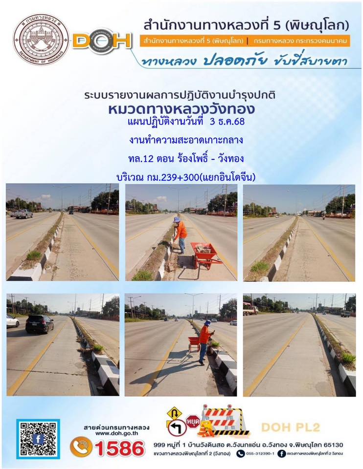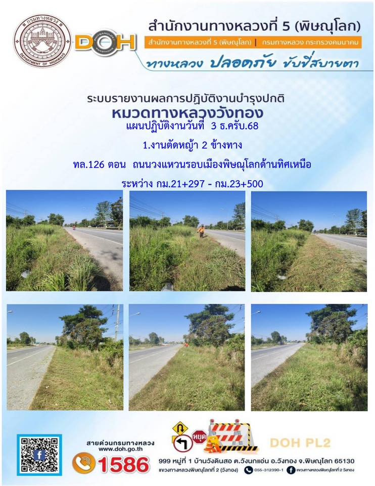 การปฏิบัติงานของ หมวดทางหลวง และ หน่วยงานในสังกัด เพื่ออำนวยความสะดวก และปลอดภัยให้กับประชาชนผู้ใช้เส้นทาง ประจำวันพุธ ที่ 3 ธันวาคม 2568