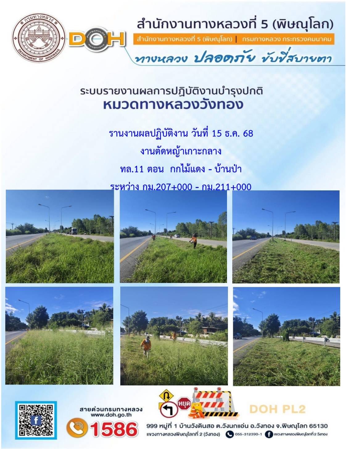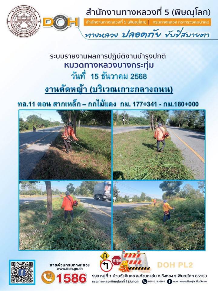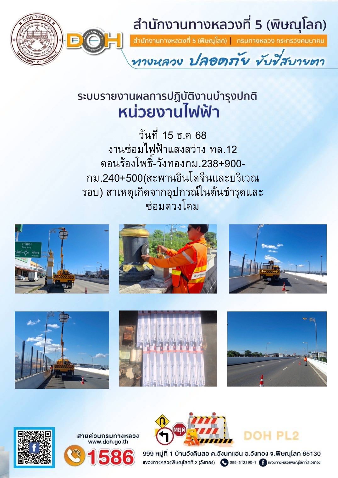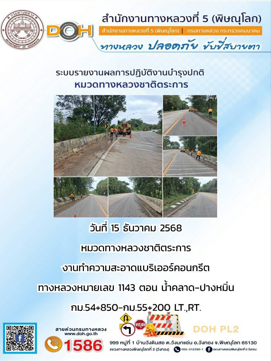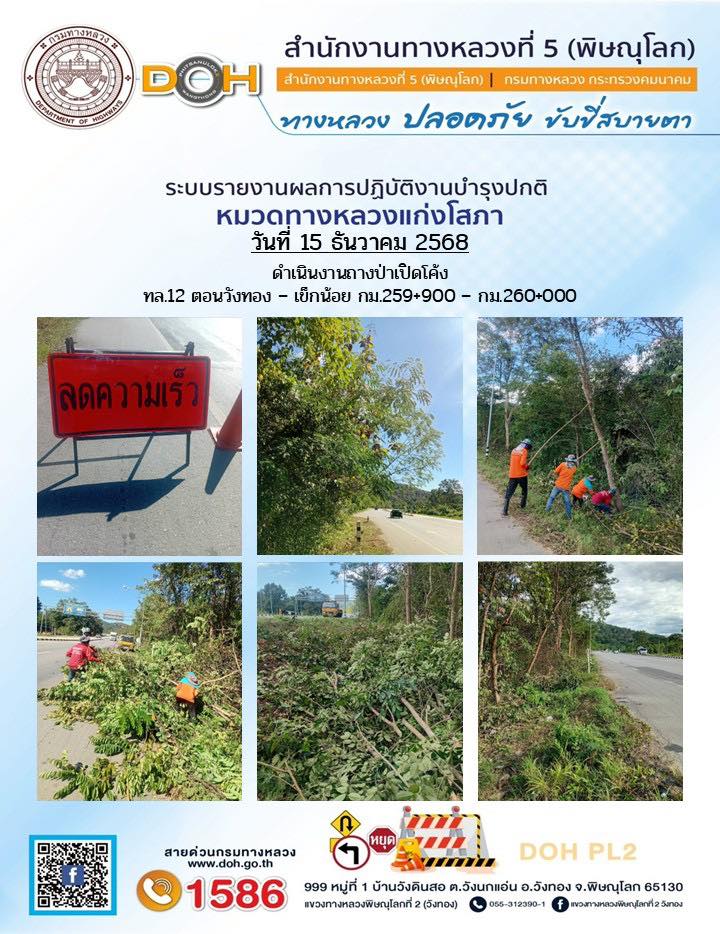 การปฏิบัติงานของ หมวดทางหลวง และ หน่วยงานในสังกัด เพื่ออำนวยความสะดวก และปลอดภัยให้กับประชาชนผู้ใช้เส้นทาง ประจำวันจันทร์ ที่ 15 ธันวาคม 2568