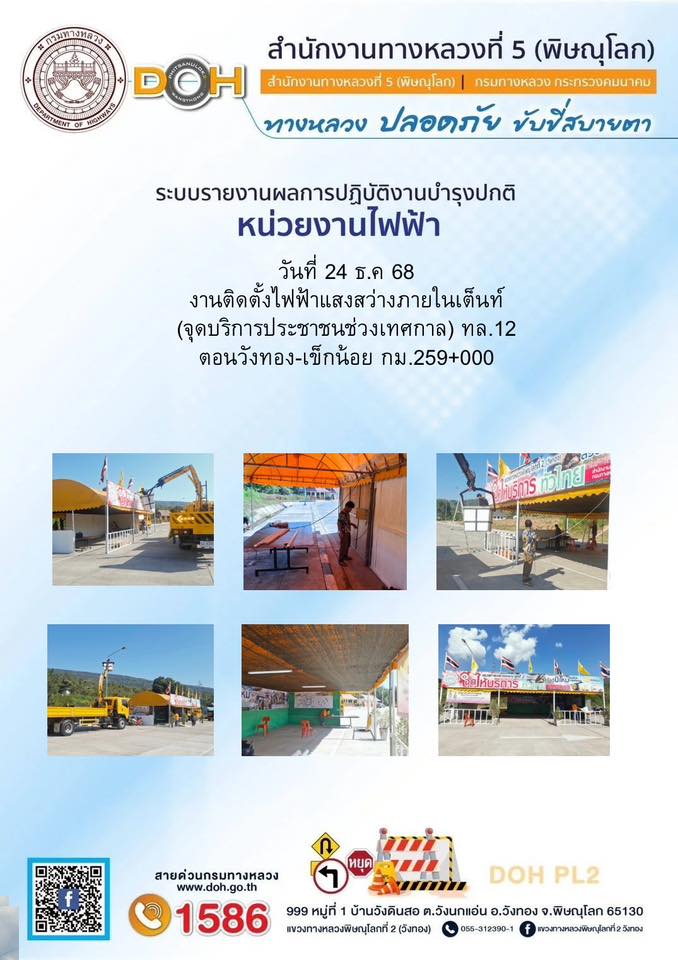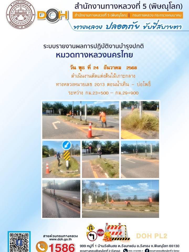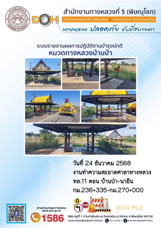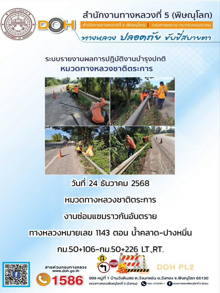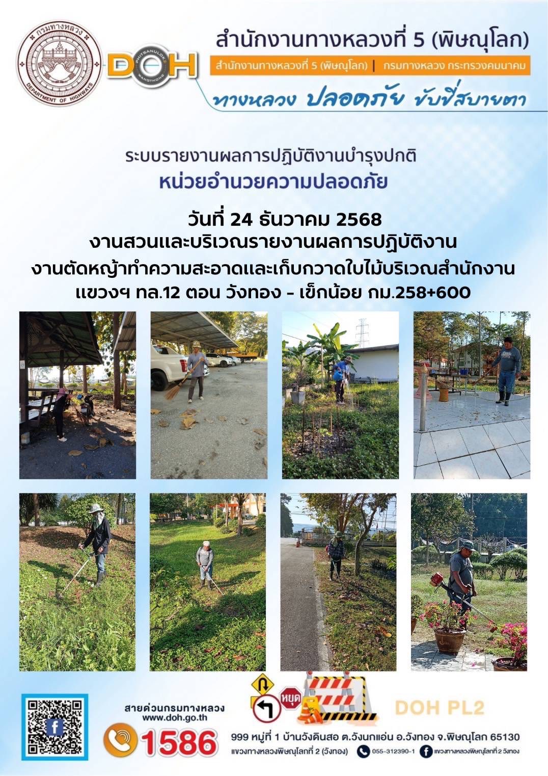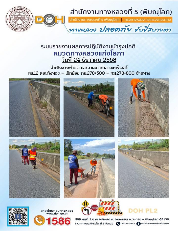 การปฏิบัติงานของ หมวดทางหลวง และ หน่วยงานในสังกัด เพื่ออำนวยความสะดวก และปลอดภัยให้กับประชาชนผู้ใช้เส้นทาง ประจำวันพุธ ที่ 24 ธันวาคม 2568
