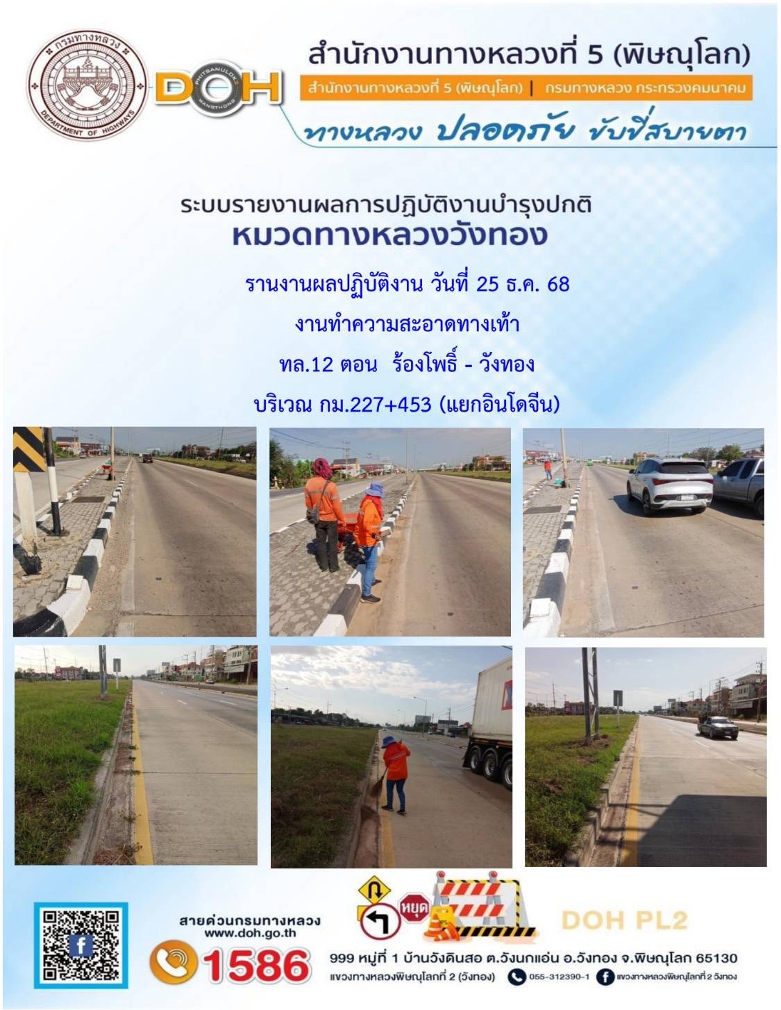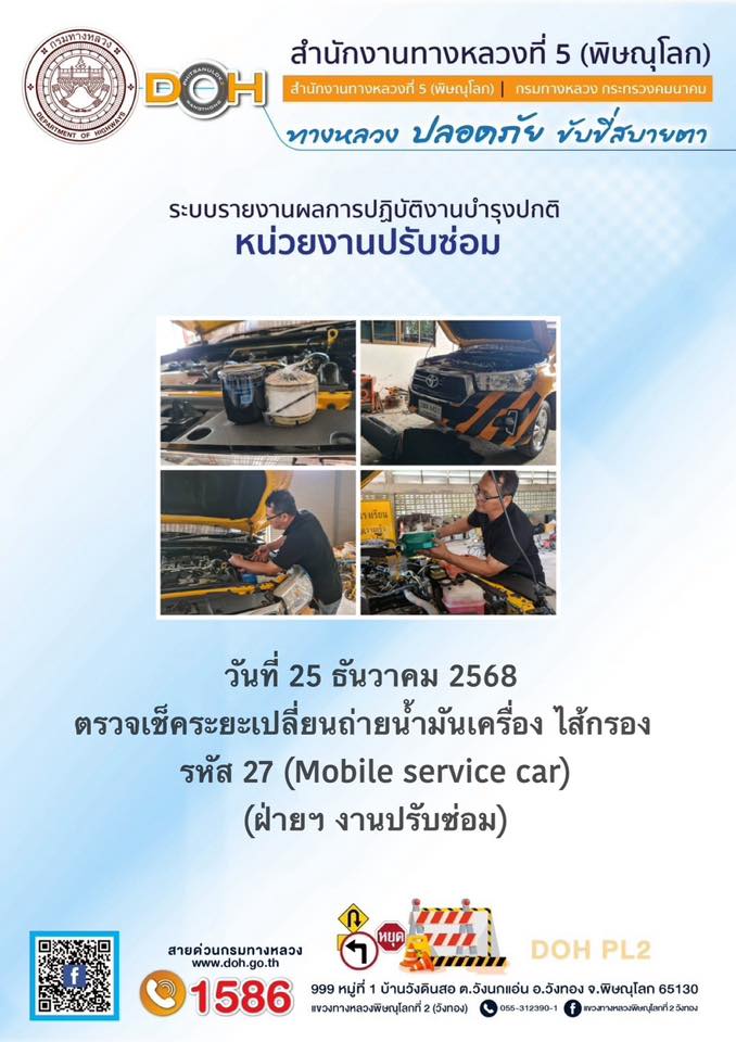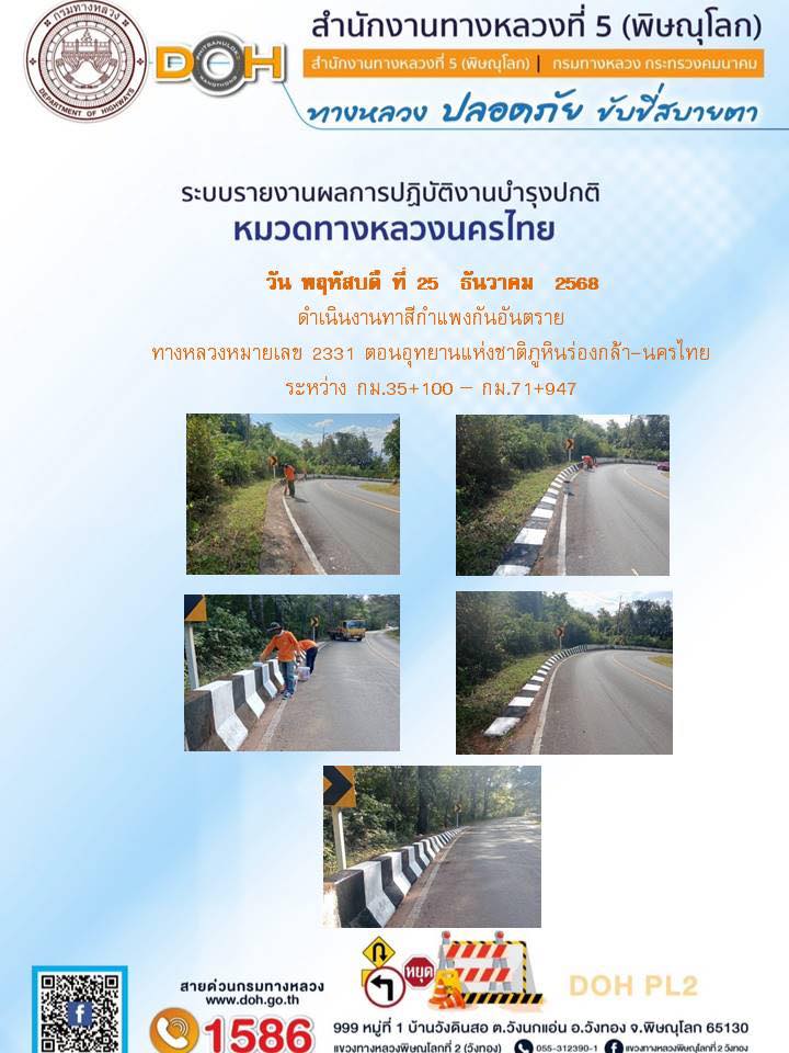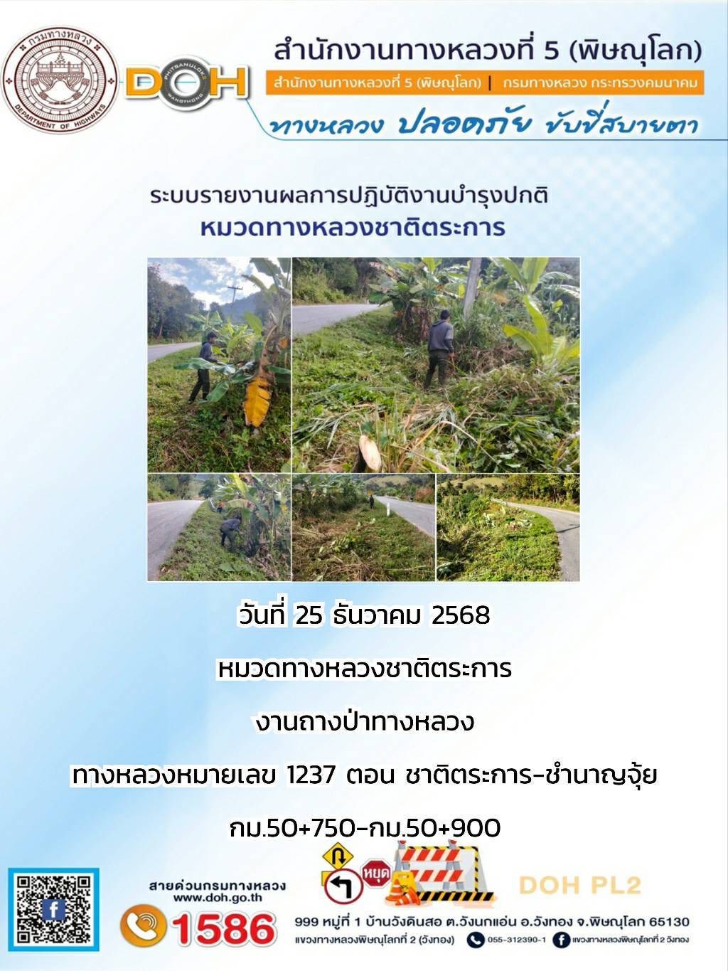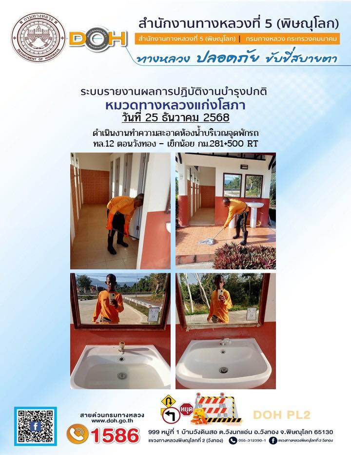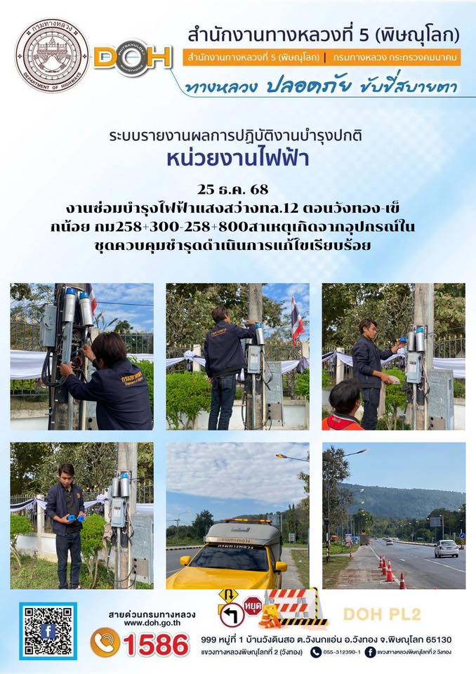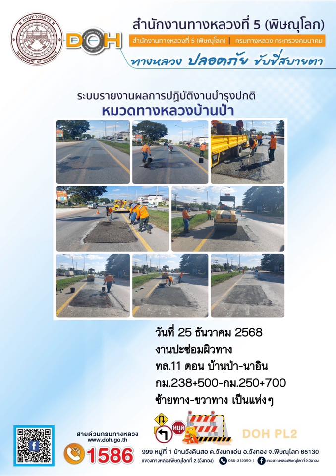 การปฏิบัติงานของ หมวดทางหลวง และ หน่วยงานในสังกัด เพื่ออำนวยความสะดวก และปลอดภัยให้กับประชาชนผู้ใช้เส้นทาง ประจำวันพฤหัสบดี ที่ 25 ธันวาคม 2568