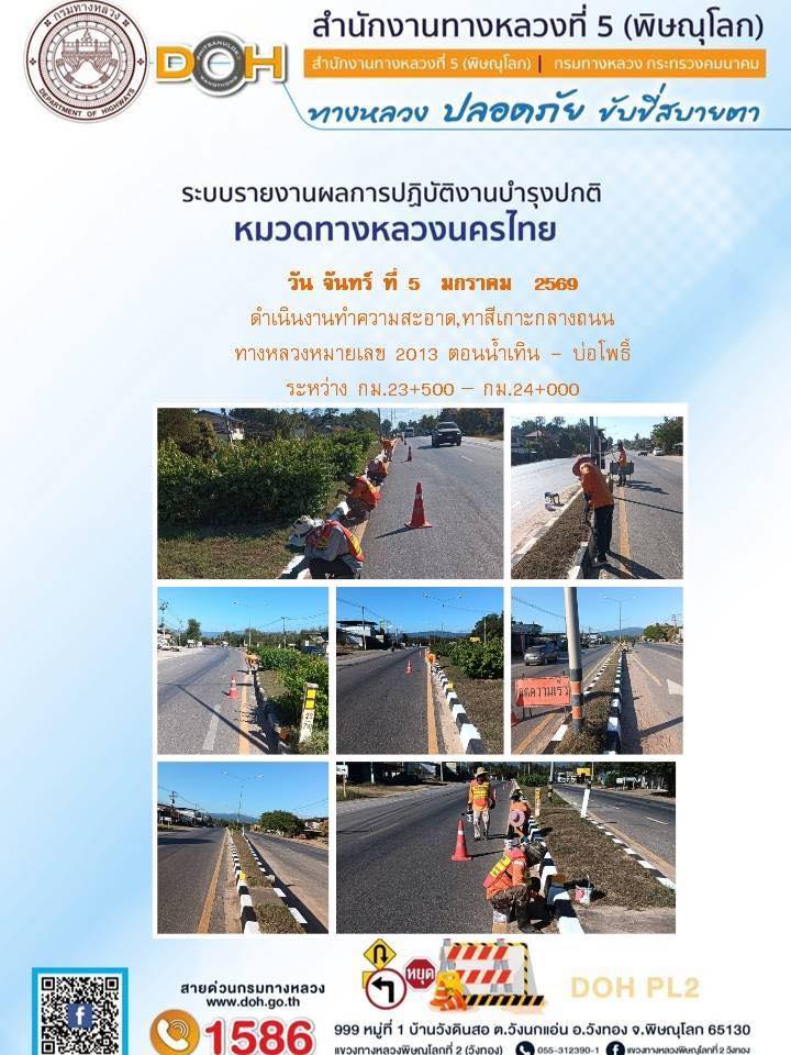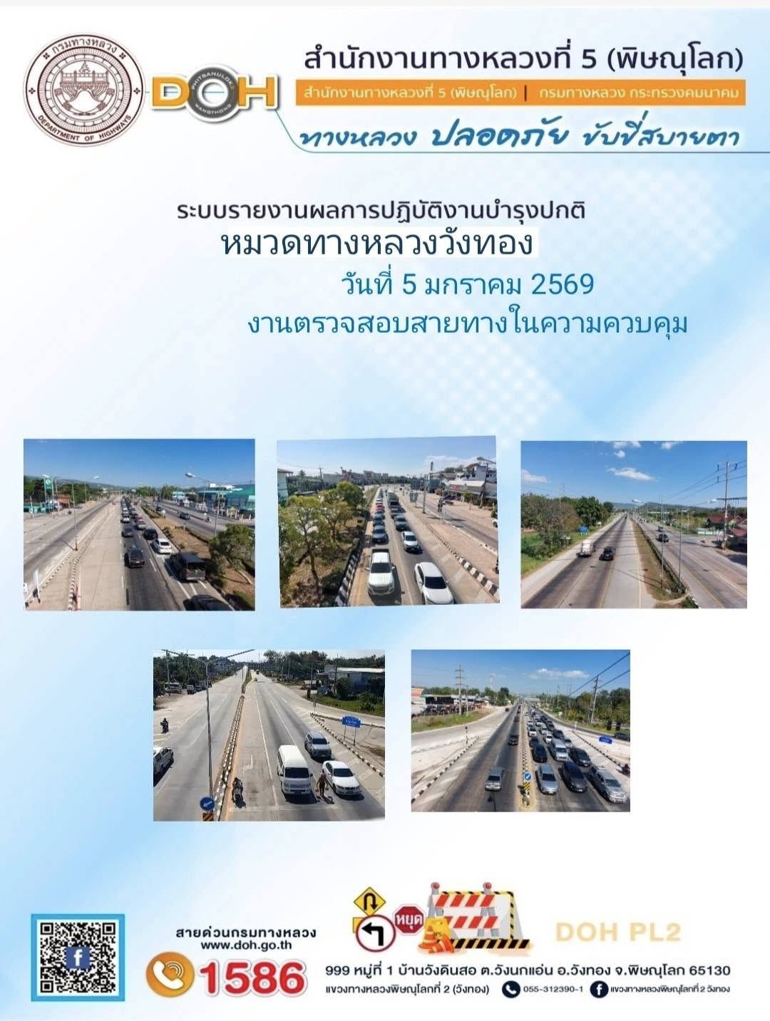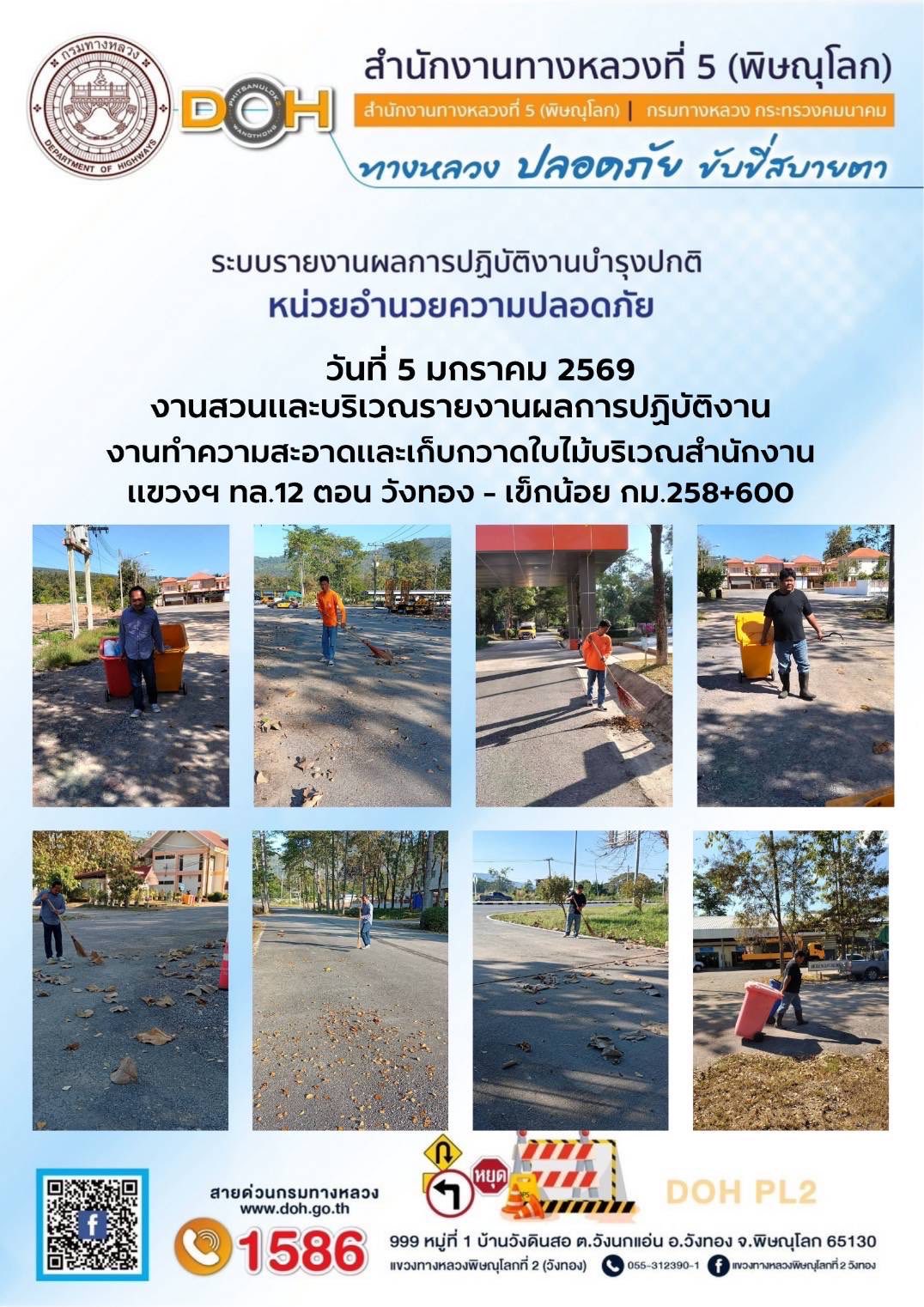การปฏิบัติงานของ หมวดทางหลวง และ หน่วยงานในสังกัด เพื่ออำนวยความสะดวก และปลอดภัยให้กับประชาชนผู้ใช้เส้นทาง ประจำวันจันทร์ ที่ 5 มกราคม 2569