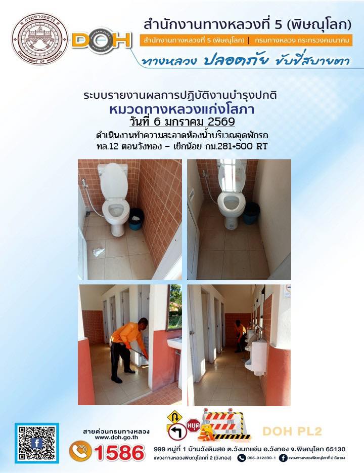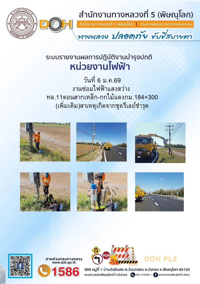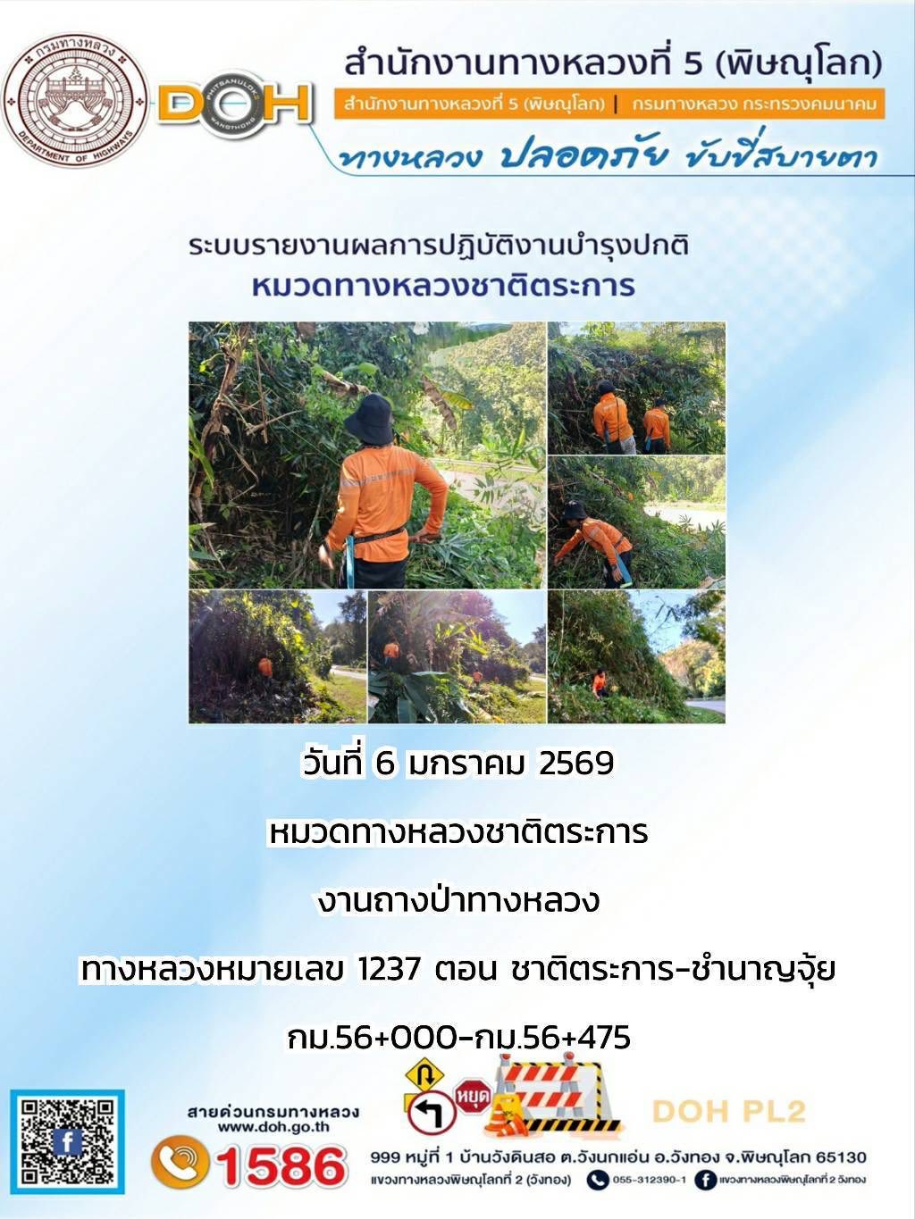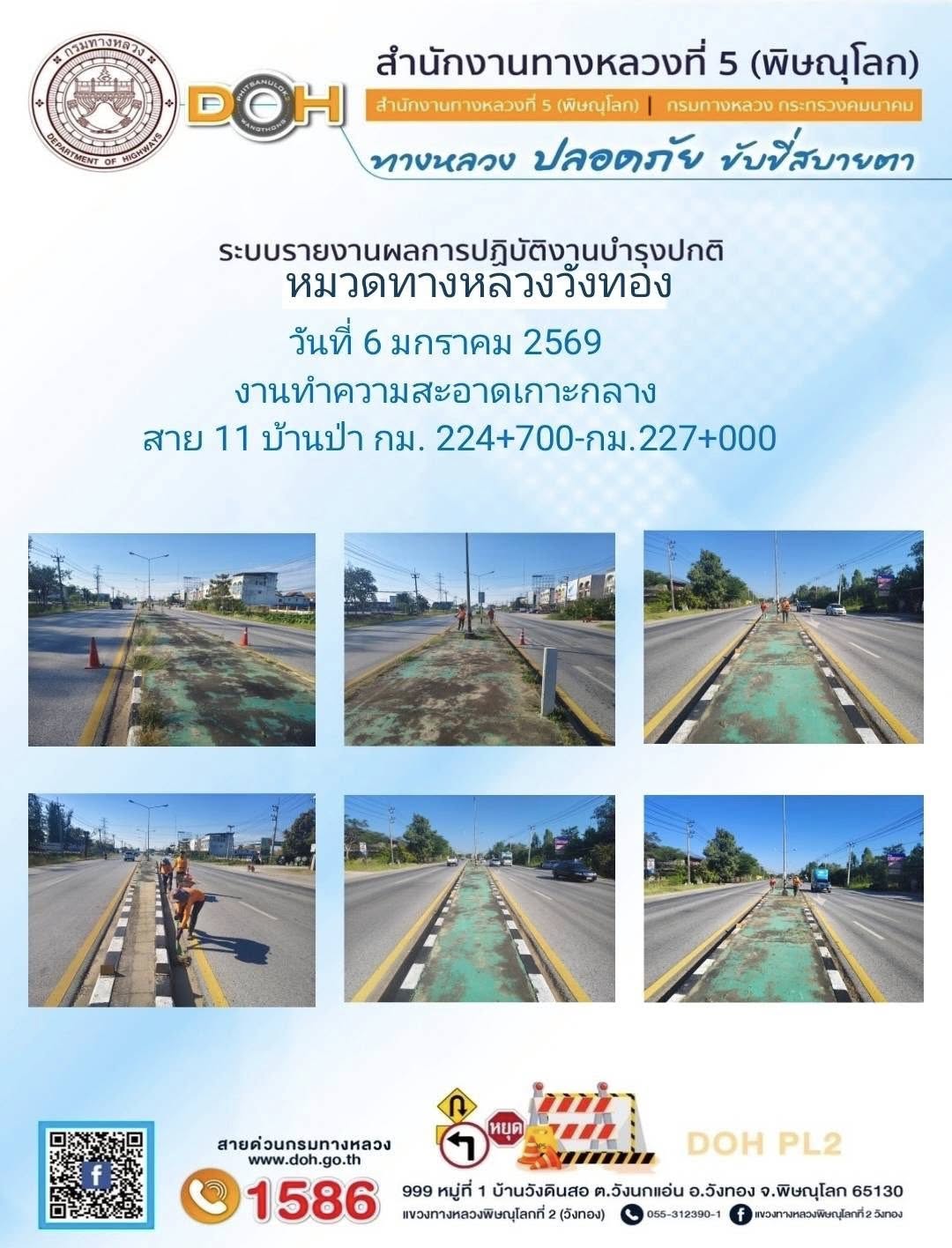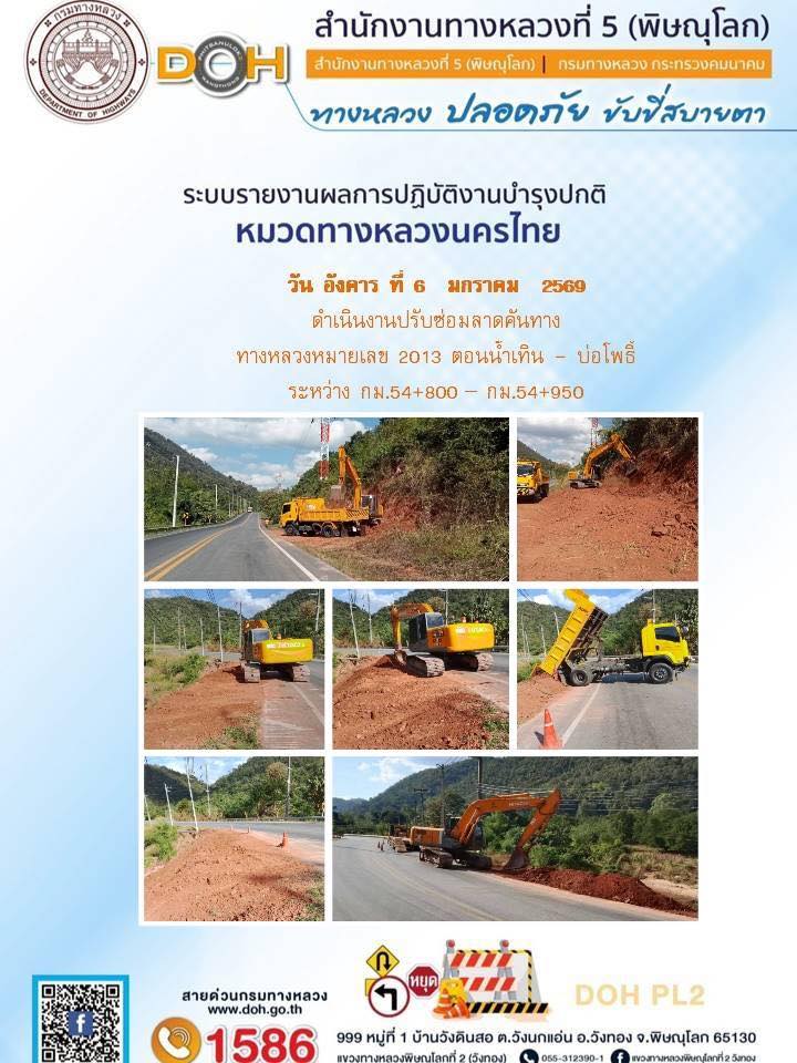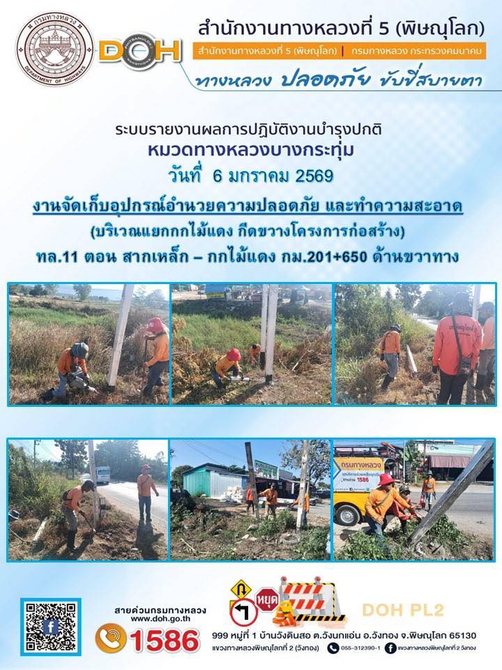 การปฏิบัติงานของ หมวดทางหลวง และ หน่วยงานในสังกัด เพื่ออำนวยความสะดวก และปลอดภัยให้กับประชาชนผู้ใช้เส้นทาง ประจำวันอังคาร ที่ 6 มกราคม 2569