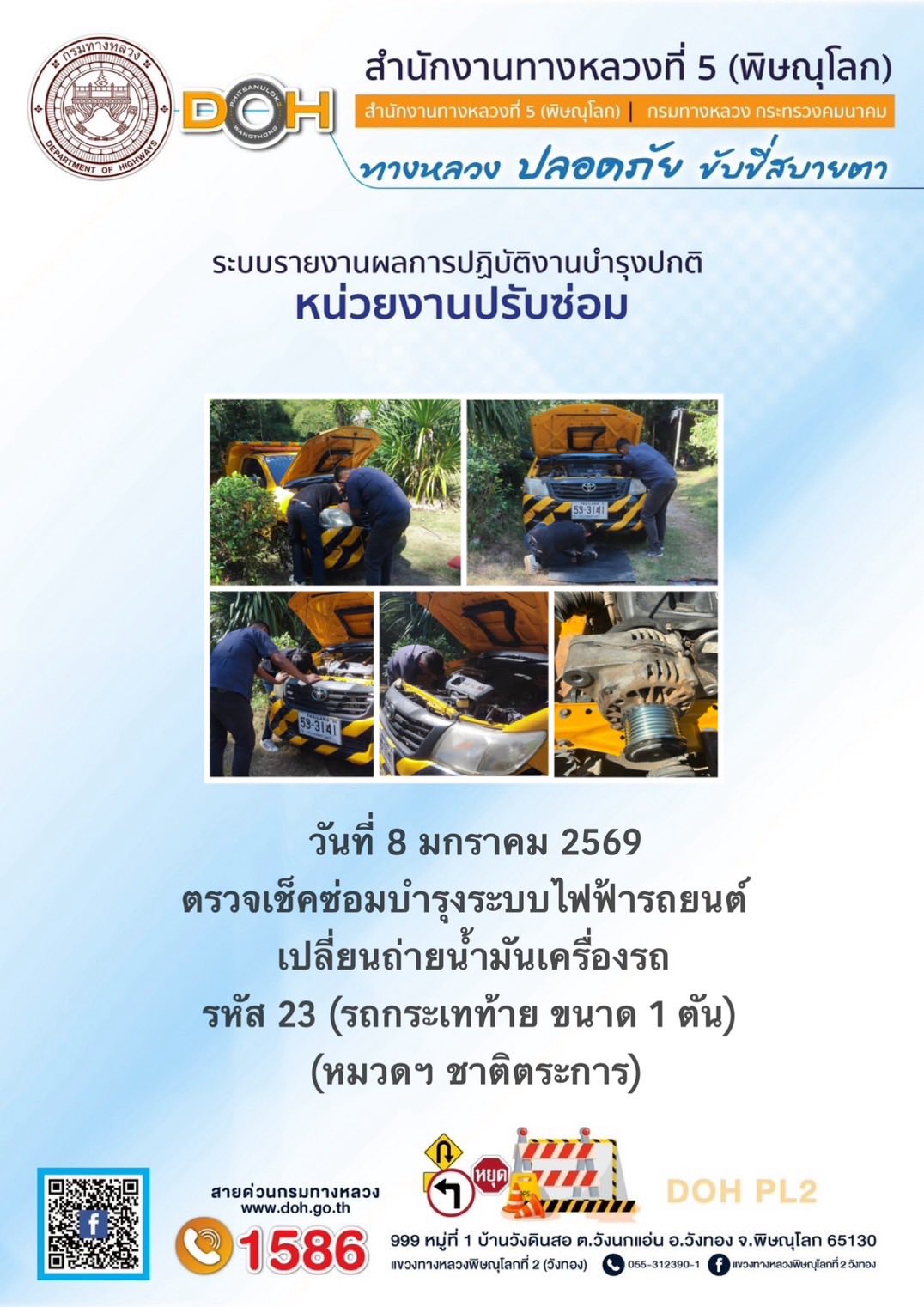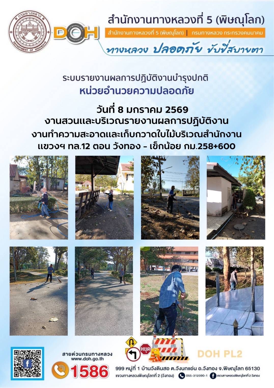 การปฏิบัติงานของ หมวดทางหลวง และ หน่วยงานในสังกัด เพื่ออำนวยความสะดวก และปลอดภัยให้กับประชาชนผู้ใช้เส้นทาง ประจำวันพฤหัสบดี ที่ 8 มกราคม 2569