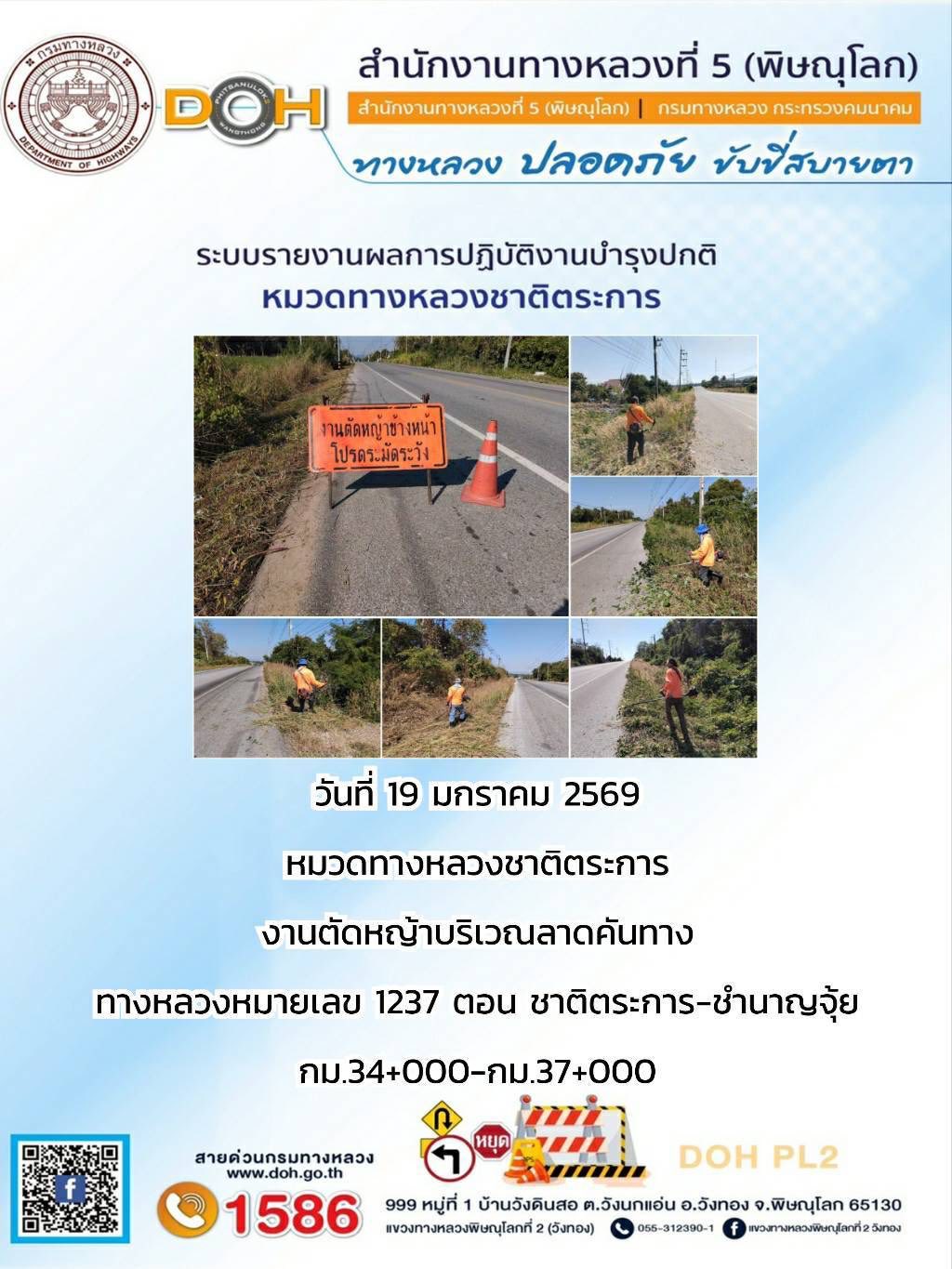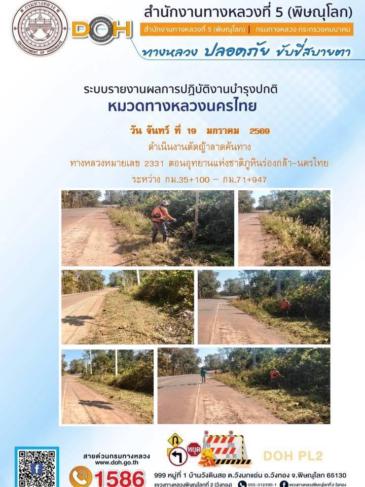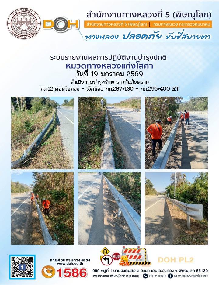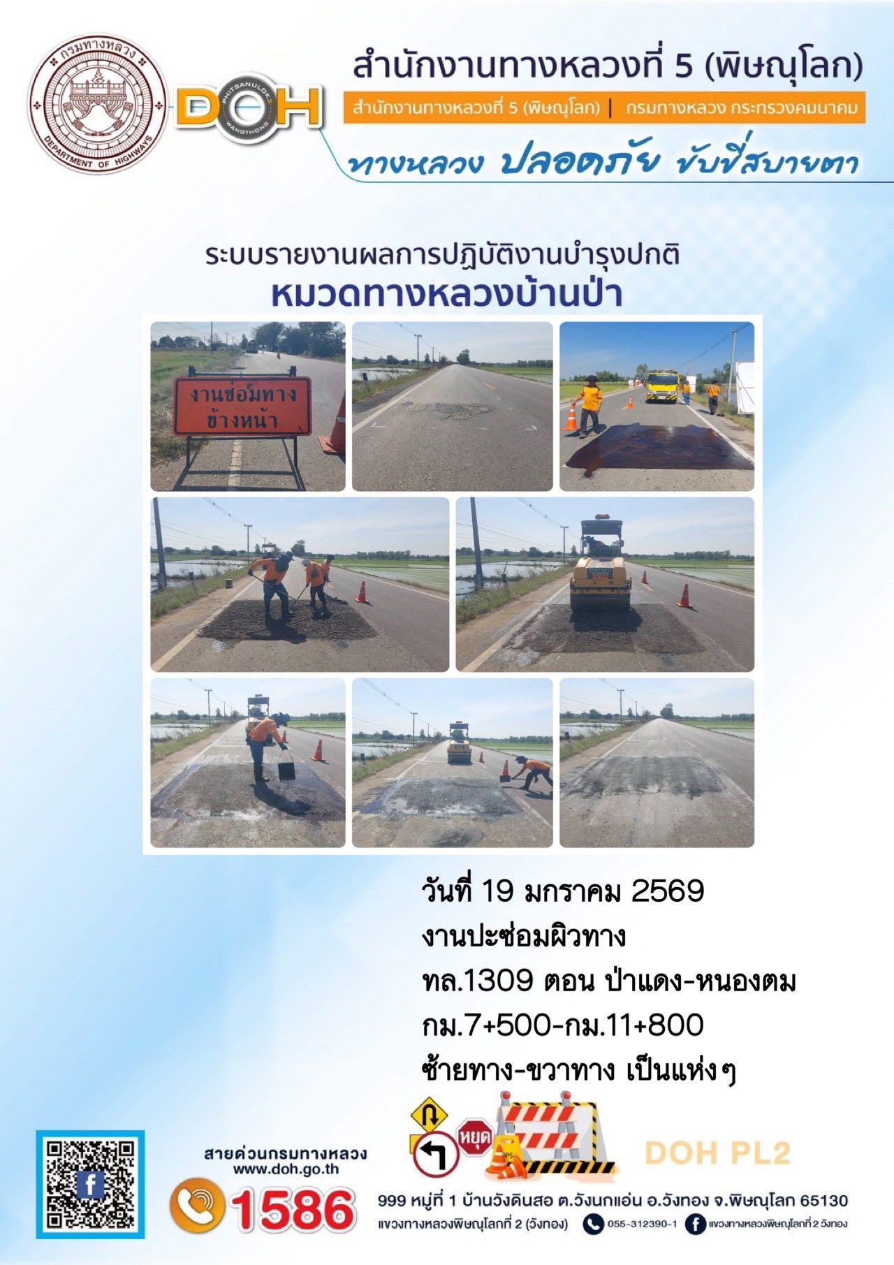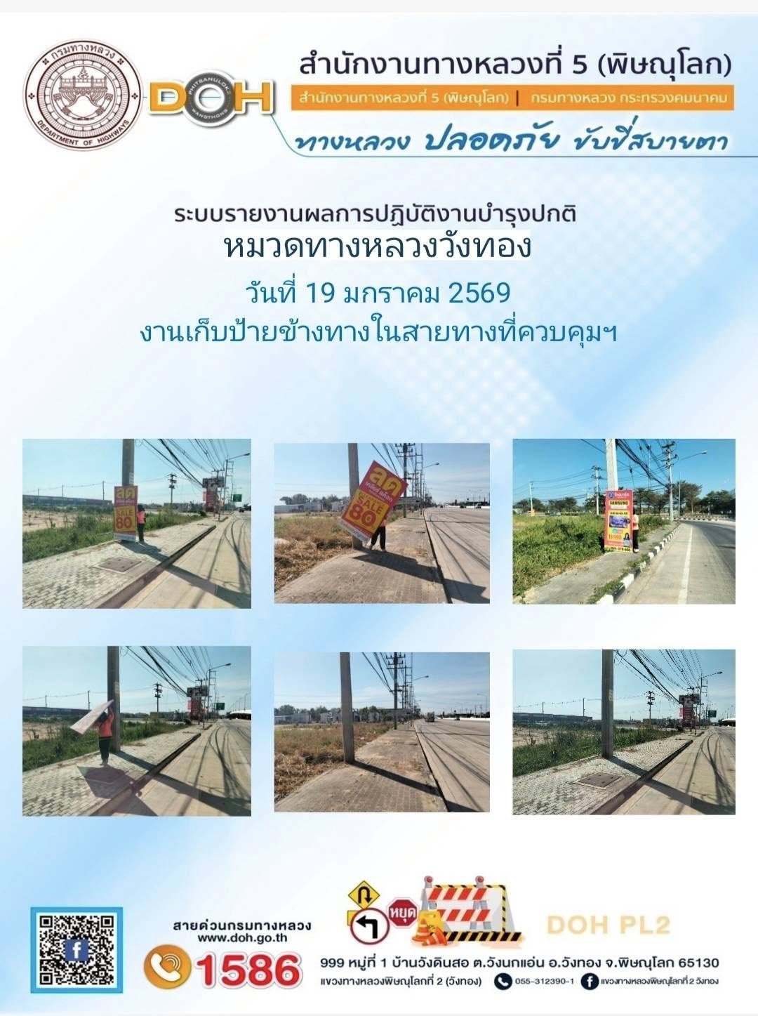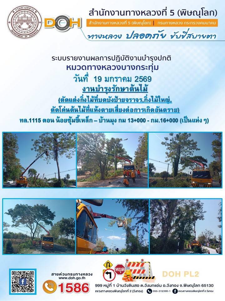 การปฏิบัติงานของ หมวดทางหลวง และ หน่วยงานในสังกัด เพื่ออำนวยความสะดวก และปลอดภัยให้กับประชาชนผู้ใช้เส้นทาง ประจำวันจันทร์ ที่ 19 มกราคม 2569