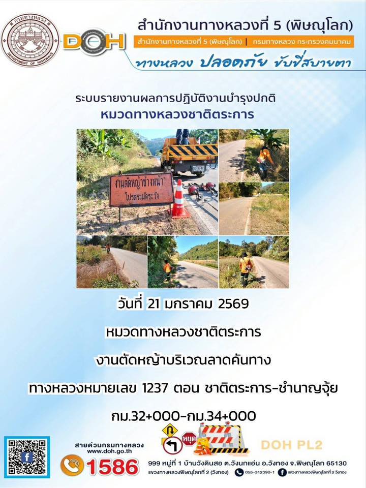 การปฏิบัติงานของ หมวดทางหลวง และ หน่วยงานในสังกัด เพื่ออำนวยความสะดวก และปลอดภัยให้กับประชาชนผู้ใช้เส้นทาง ประจำวันพุธ ที่ 21 มกราคม 2569