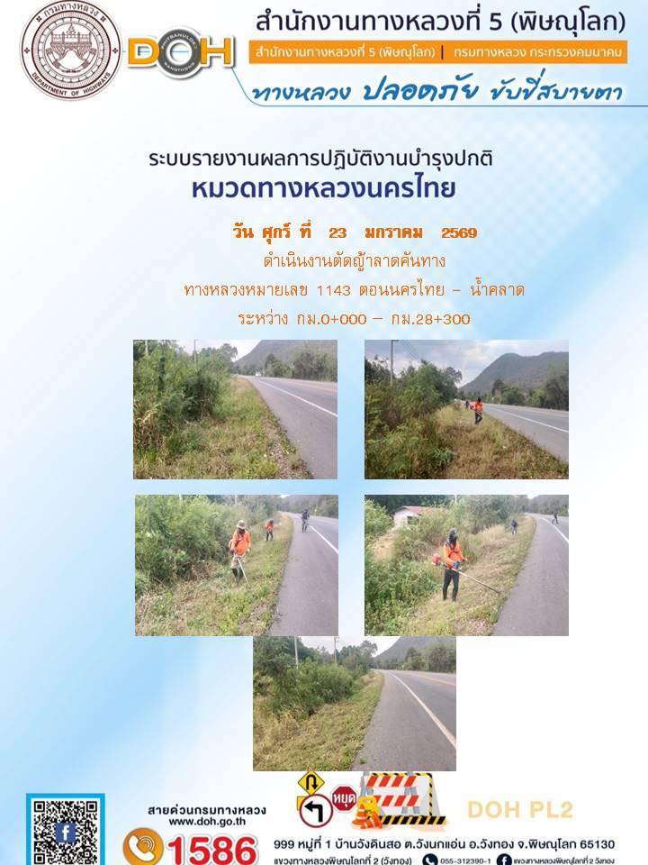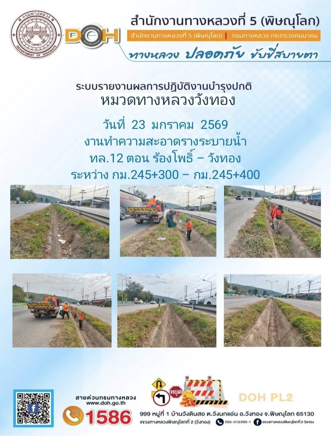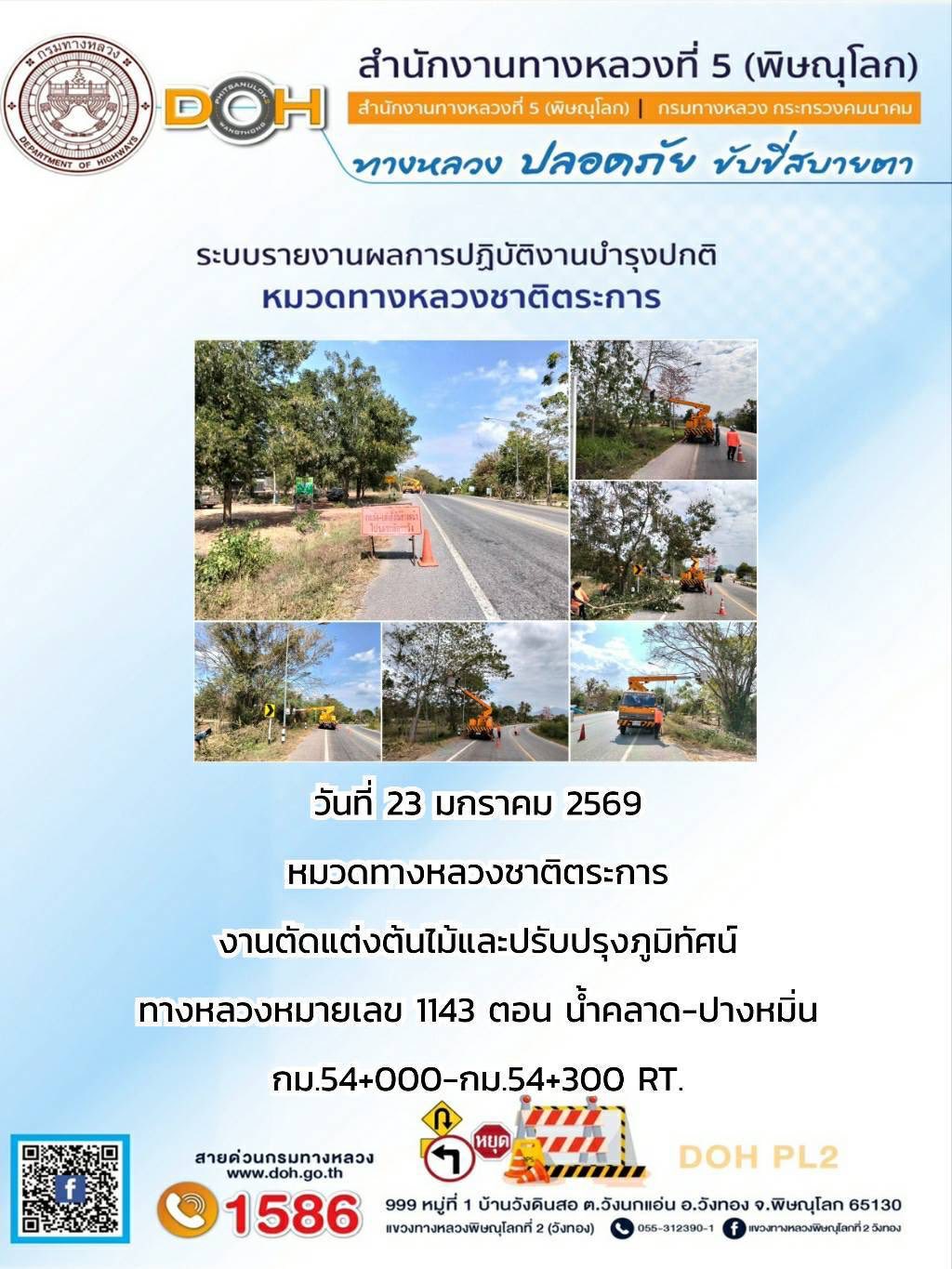 การปฏิบัติงานของ หมวดทางหลวง และ หน่วยงานในสังกัด เพื่ออำนวยความสะดวก และปลอดภัยให้กับประชาชนผู้ใช้เส้นทาง ประจำวันศุกร์ ที่ 23 มกราคม 2569