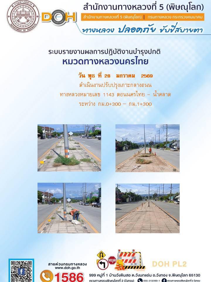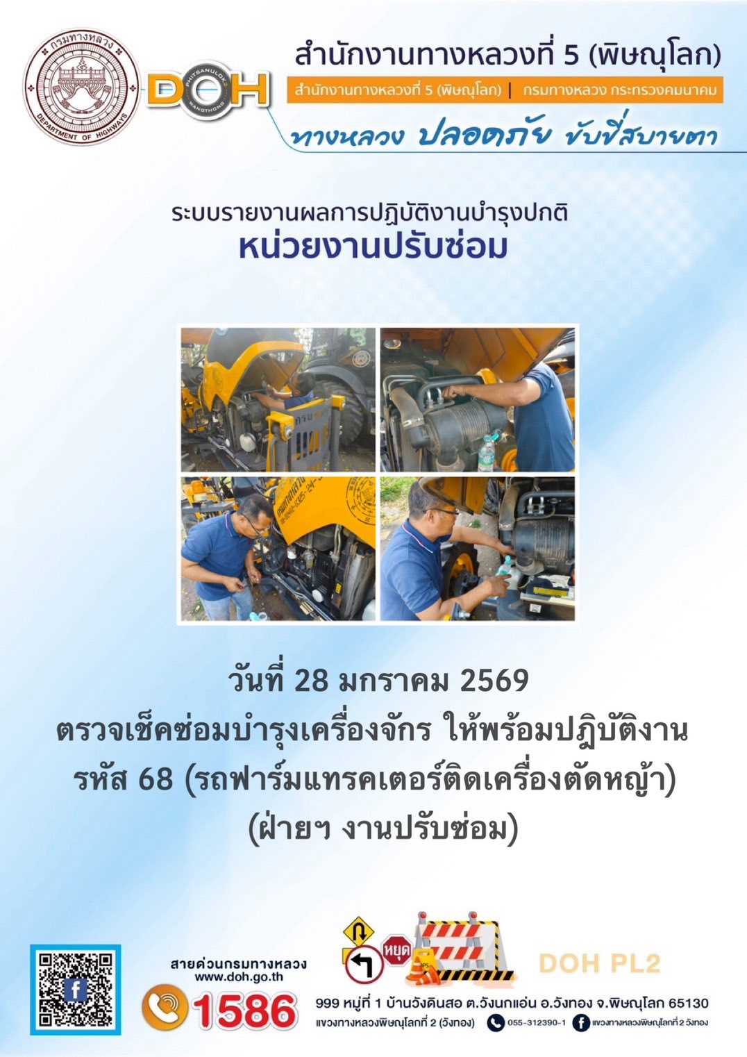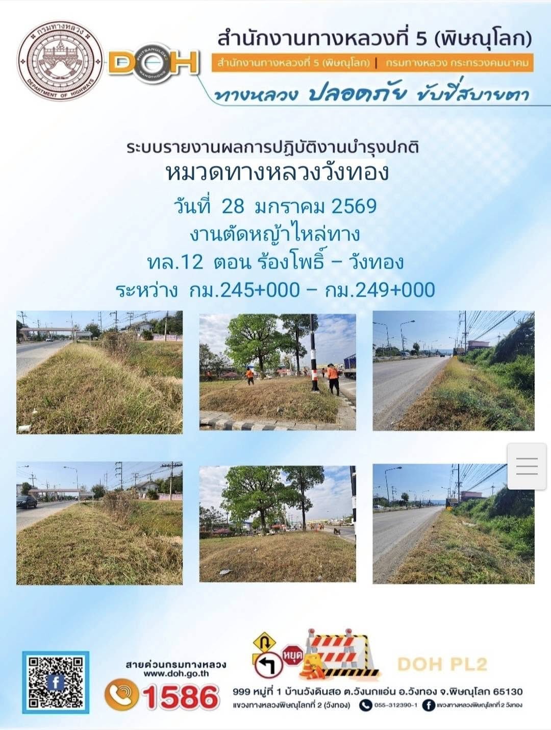 การปฏิบัติงานของ หมวดทางหลวง และ หน่วยงานในสังกัด เพื่ออำนวยความสะดวก และปลอดภัยให้กับประชาชนผู้ใช้เส้นทาง ประจำวันพุธ ที่ 28 มกราคม 2569