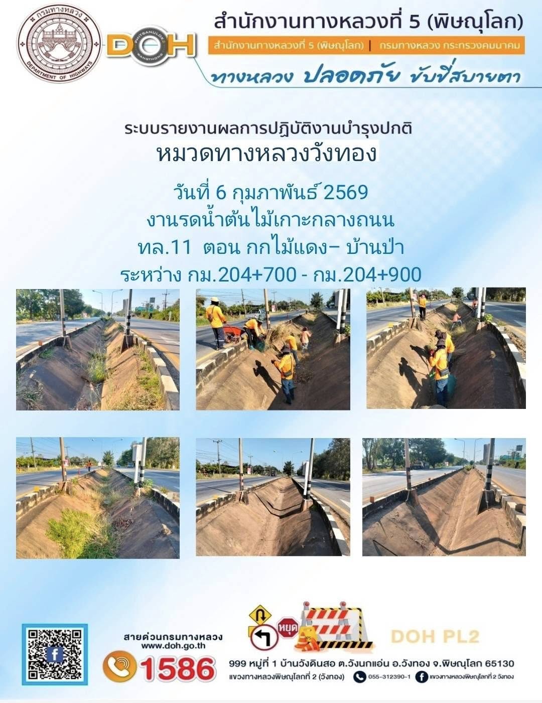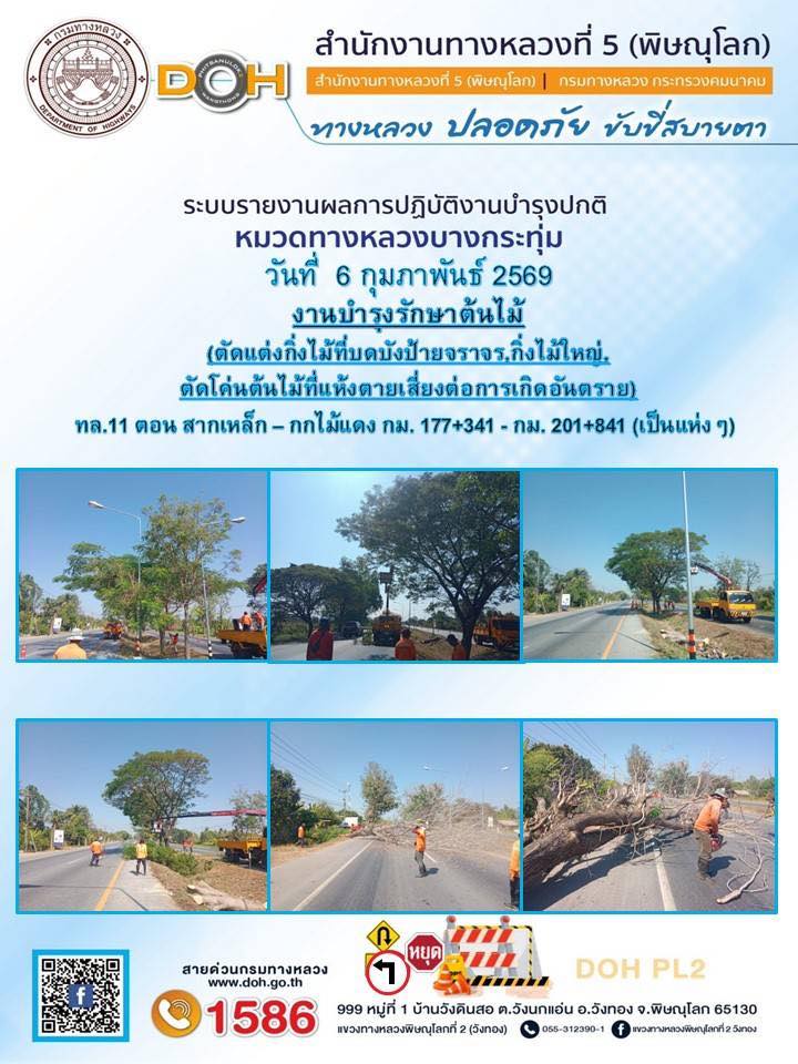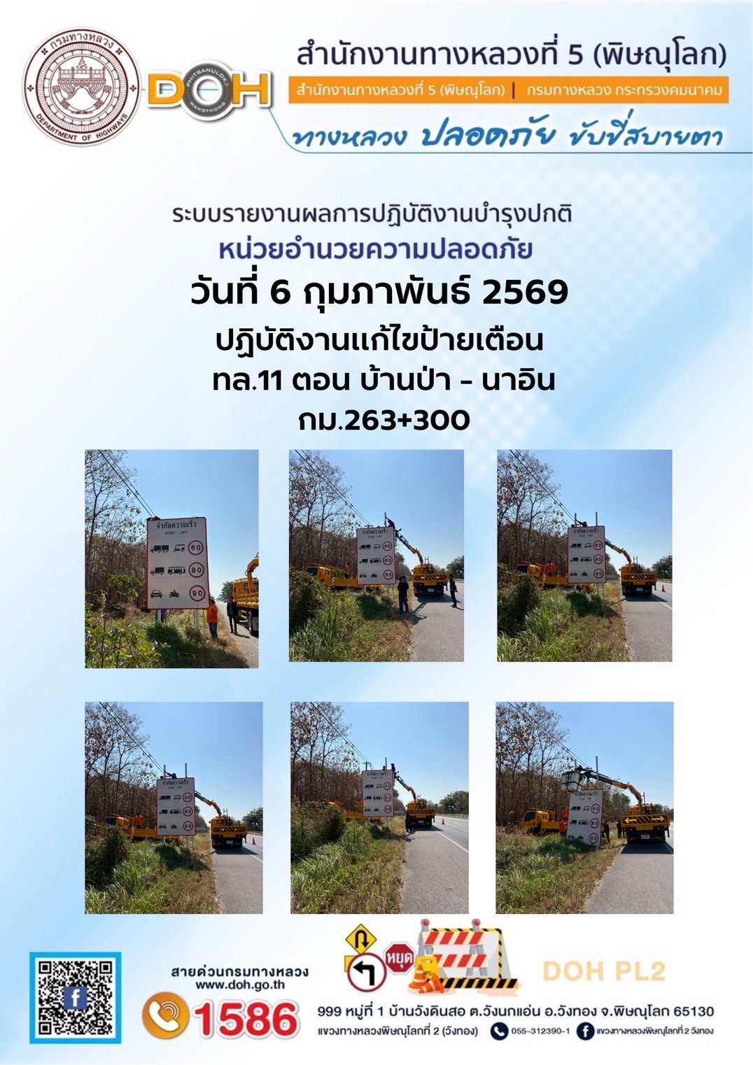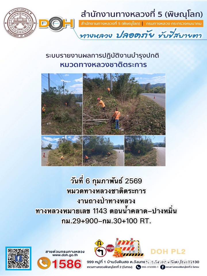 การปฏิบัติงานของ หมวดทางหลวง และ หน่วยงานในสังกัด เพื่ออำนวยความสะดวก และปลอดภัยให้กับประชาชนผู้ใช้เส้นทาง ประจำวันศุกร์ ที่ 6 กุมภาพันธ์ 2569