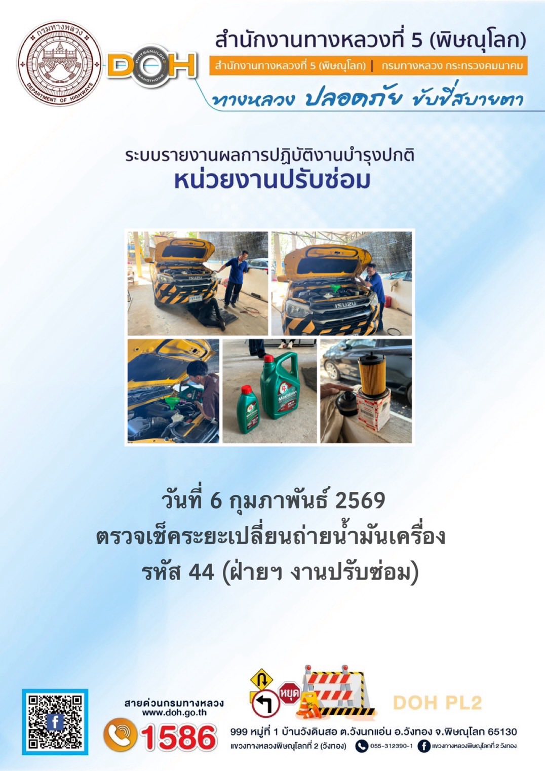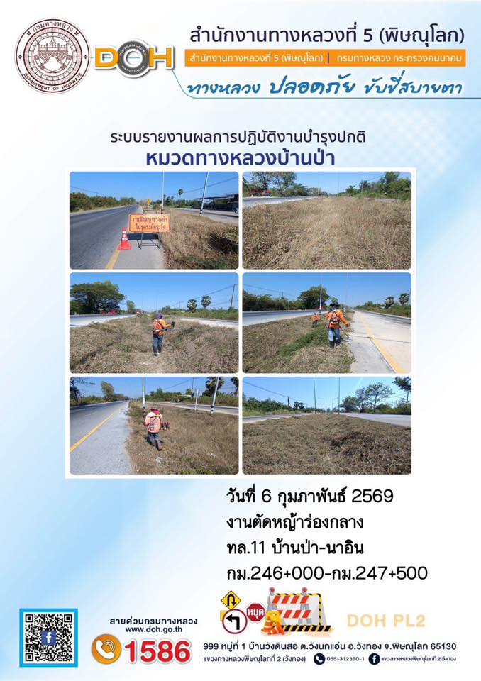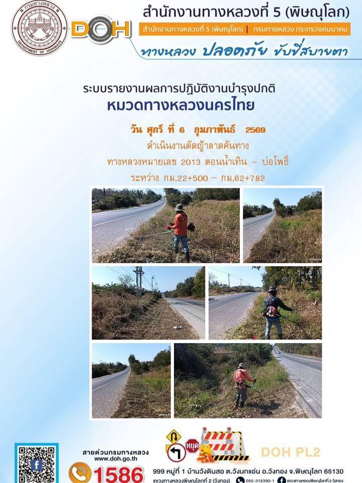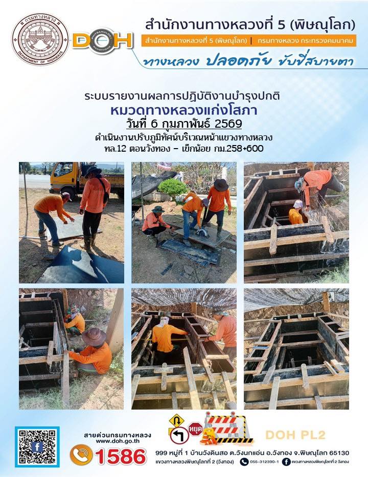 การปฏิบัติงานของ หมวดทางหลวง และ หน่วยงานในสังกัด เพื่ออำนวยความสะดวก และปลอดภัยให้กับประชาชนผู้ใช้เส้นทาง ประจำวันศุกร์ ที่ 6 กุมภาพันธ์ 2569