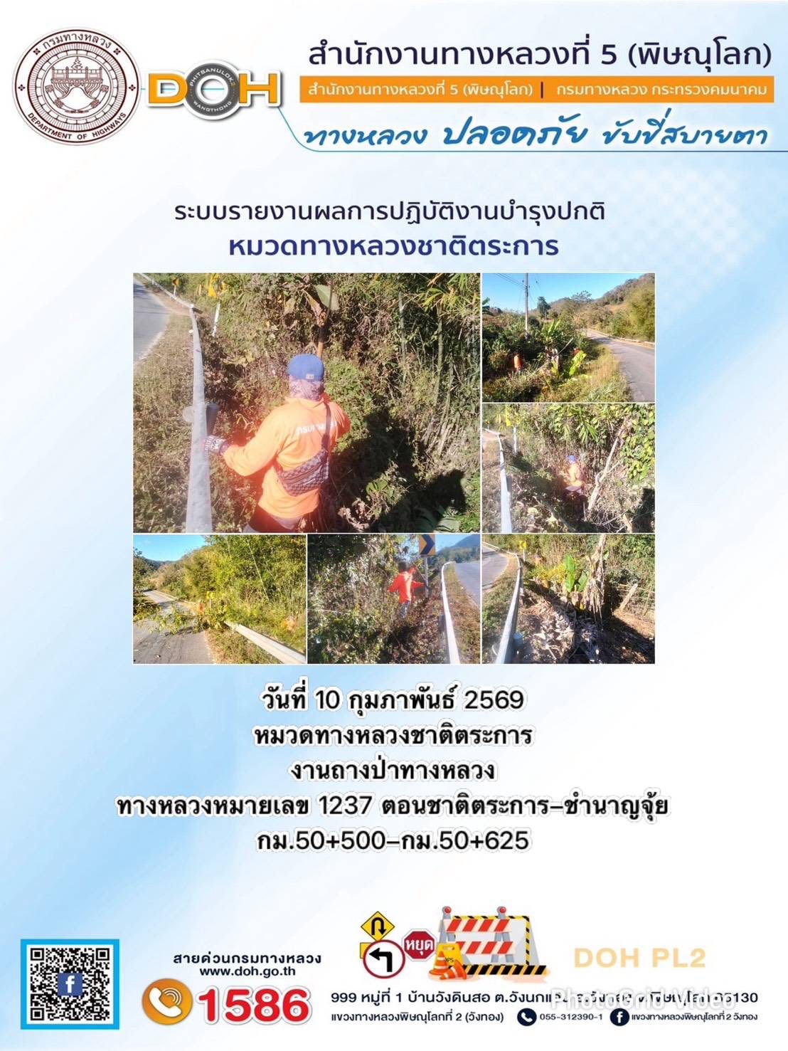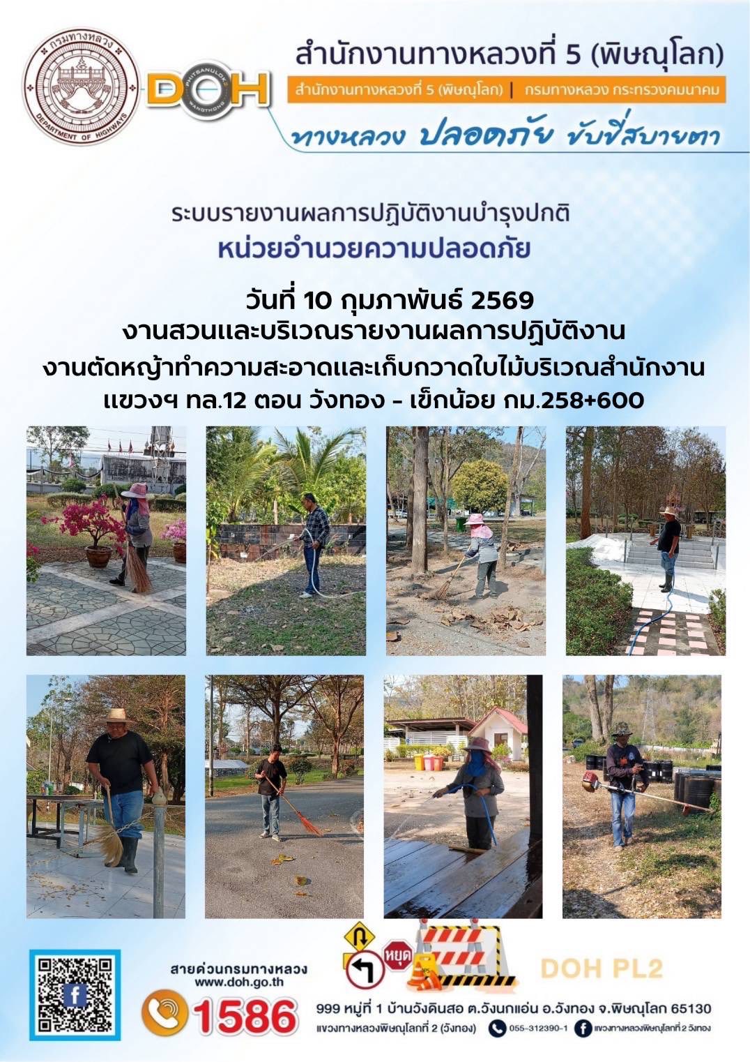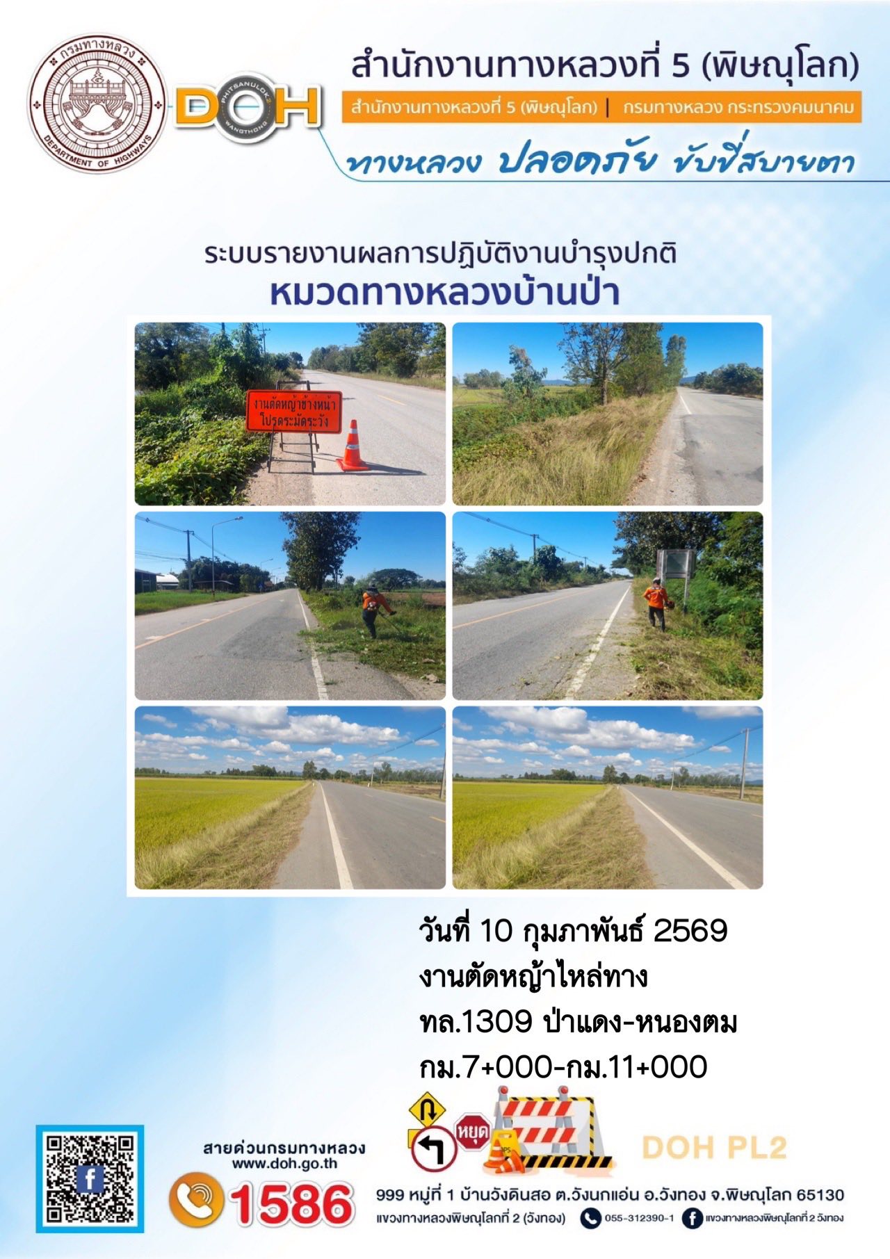 การปฏิบัติงานของ หมวดทางหลวง และ หน่วยงานในสังกัด เพื่ออำนวยความสะดวก และปลอดภัยให้กับประชาชนผู้ใช้เส้นทาง ประจำวันอังคาร ที่ 10 กุมภาพันธ์ 2569