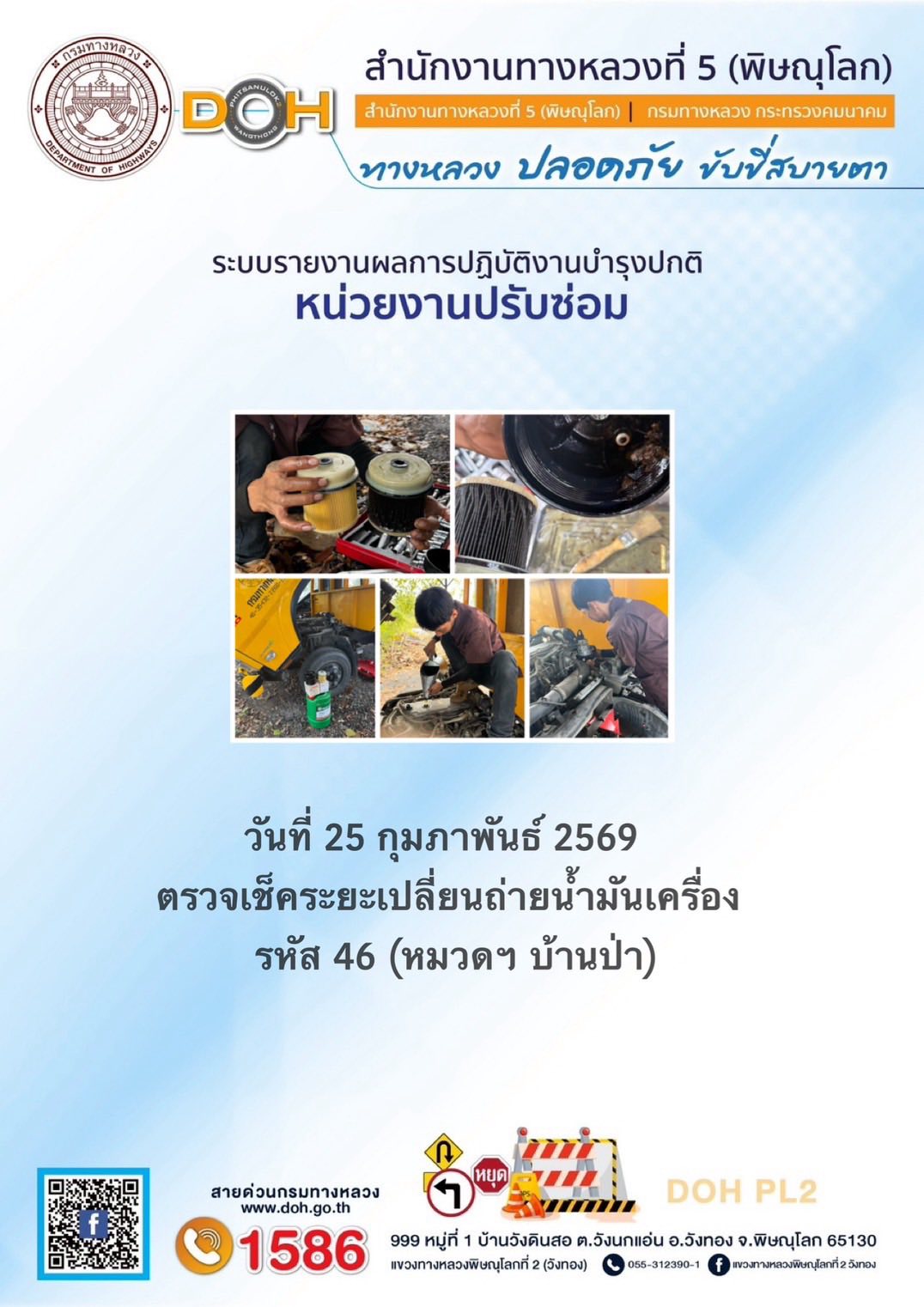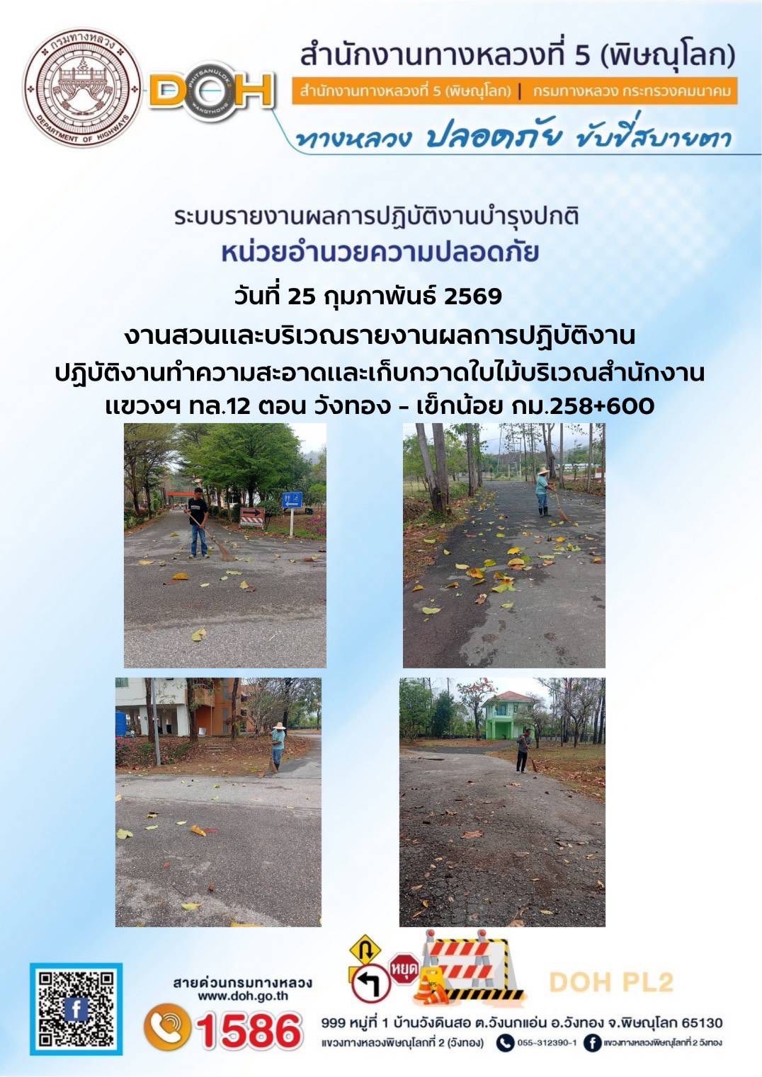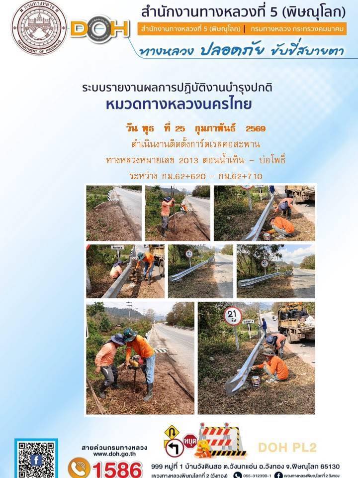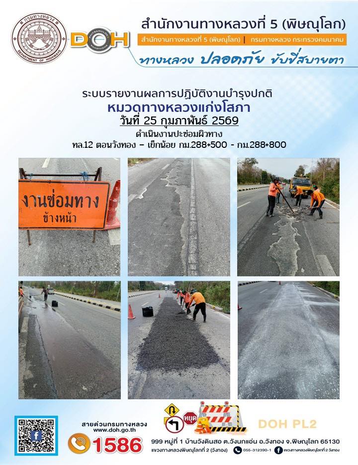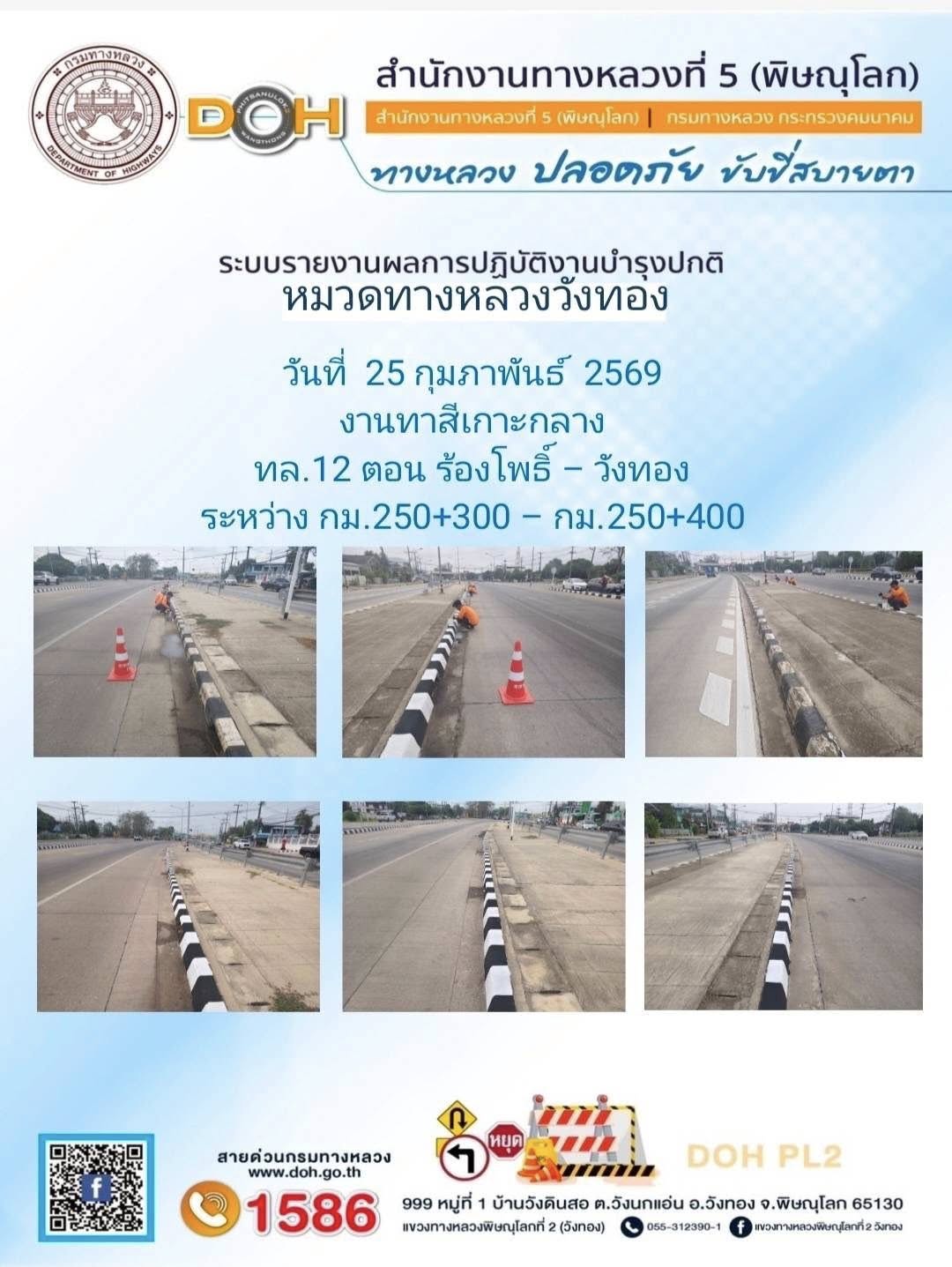 การปฏิบัติงานของ หมวดทางหลวง และ หน่วยงานในสังกัด เพื่ออำนวยความสะดวก และปลอดภัยให้กับประชาชนผู้ใช้เส้นทาง ประจำวันพุธ ที่ 25 กุมภาพันธ์ 2569