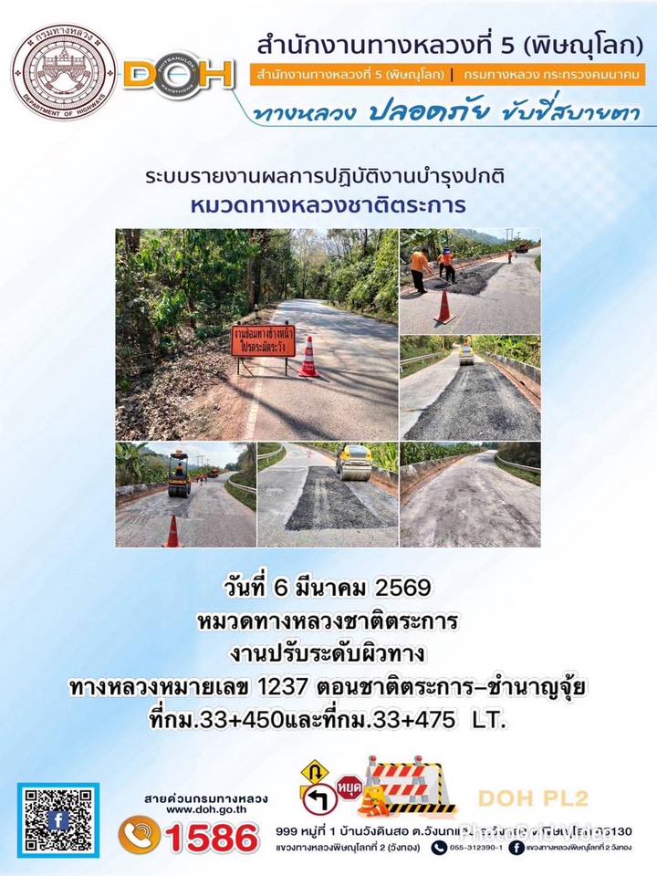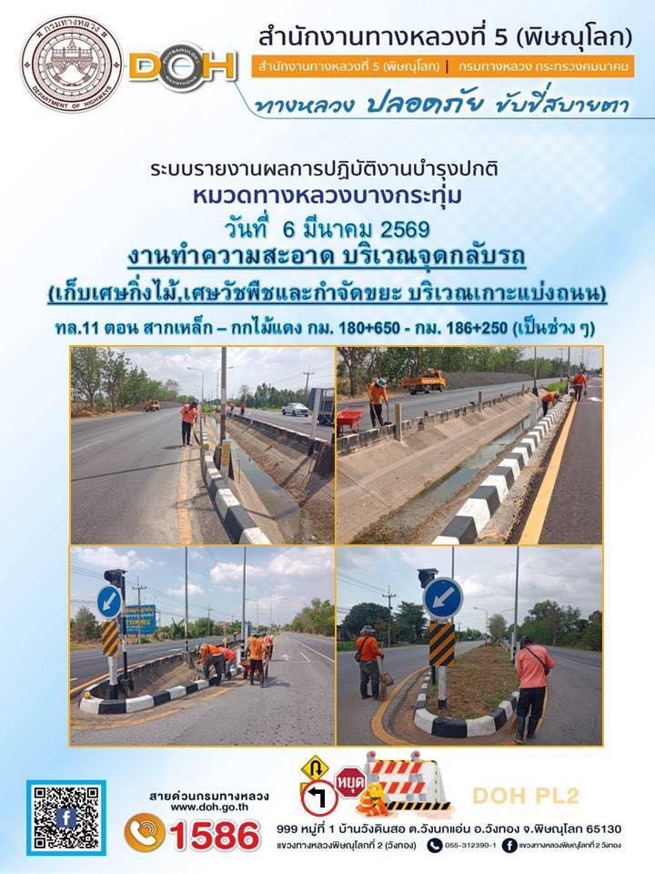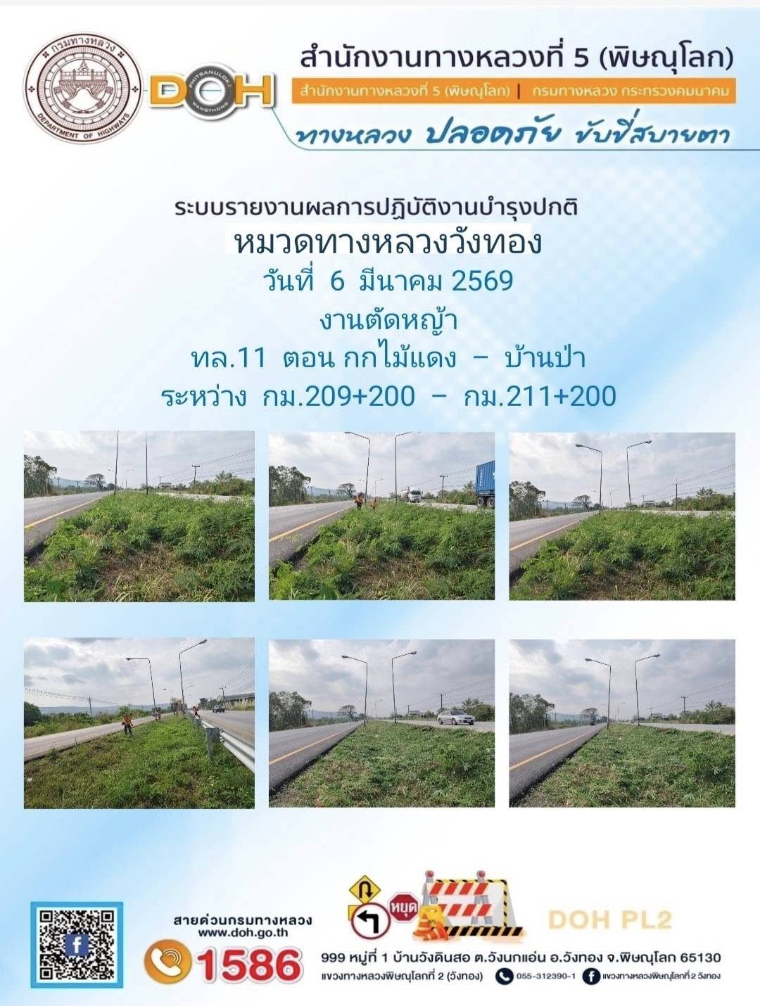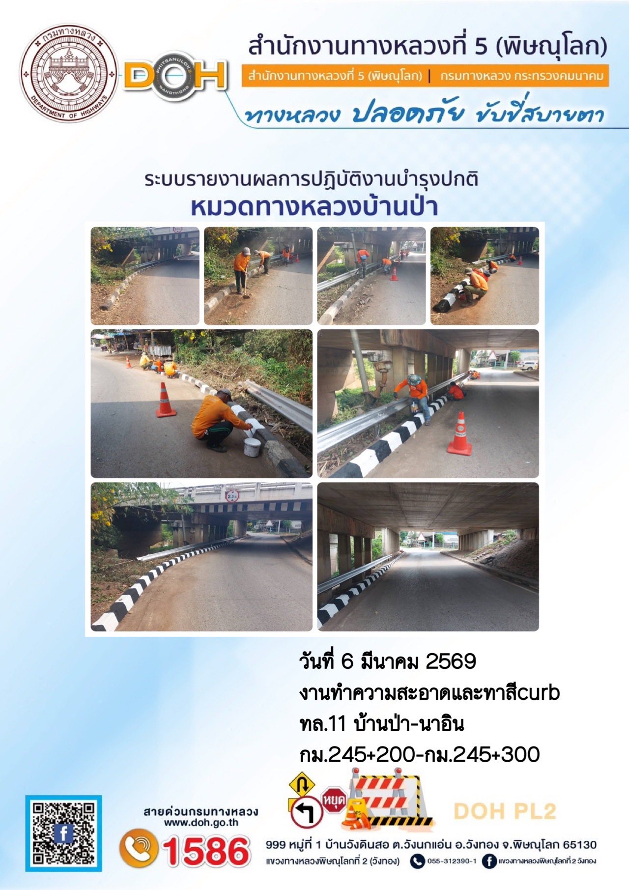 การปฏิบัติงานของ หมวดทางหลวง และ หน่วยงานในสังกัด เพื่ออำนวยความสะดวก และปลอดภัยให้กับประชาชนผู้ใช้เส้นทาง ประจำวันศุกร์ ที่ 6 กุมภาพันธ์ 2569