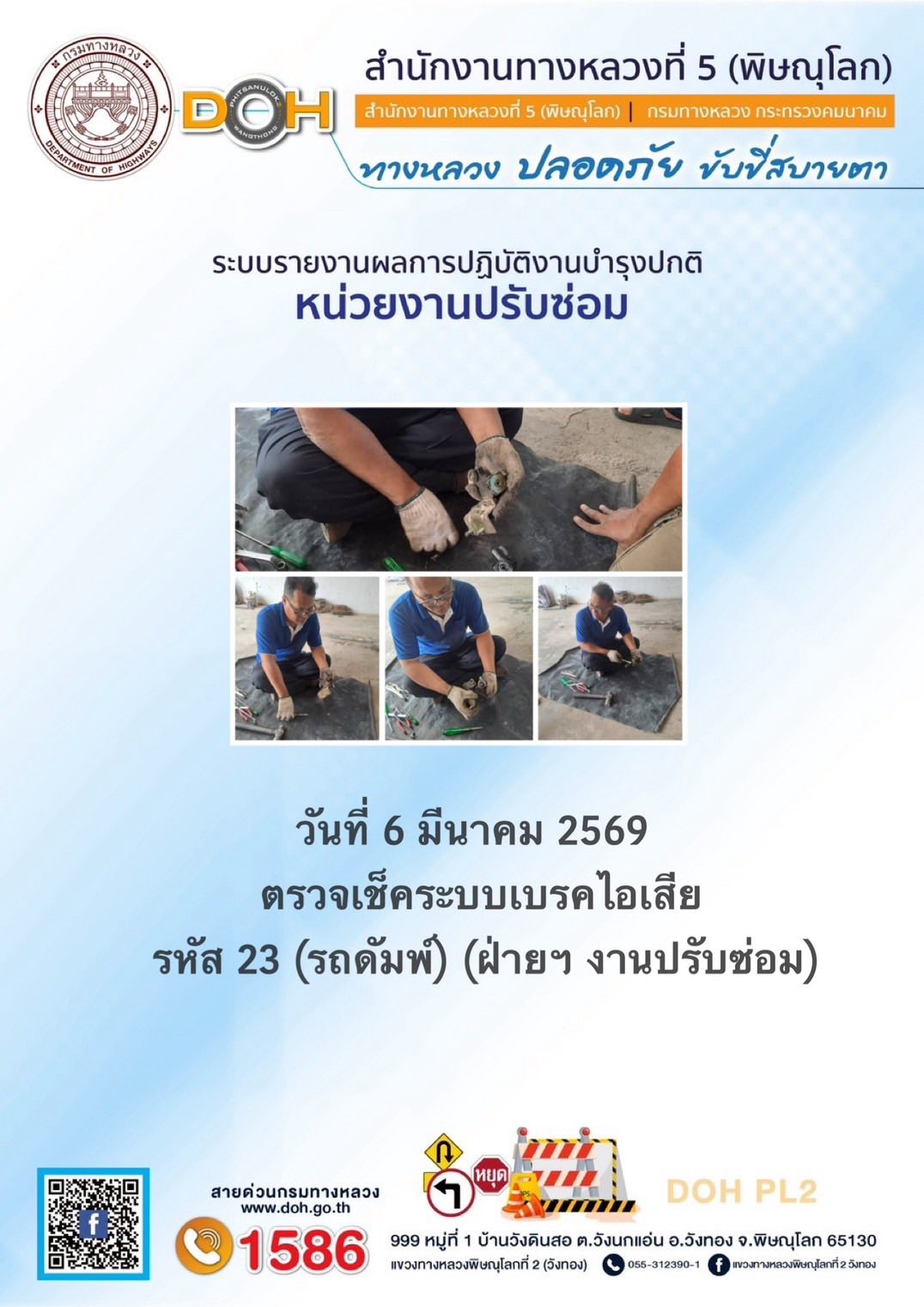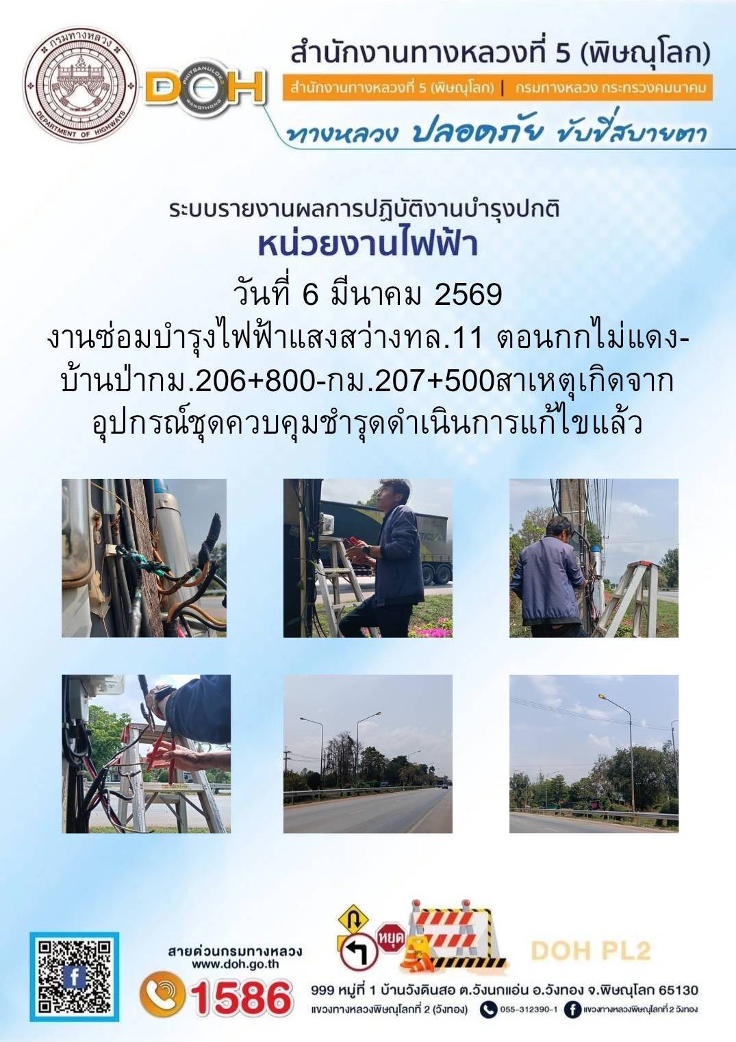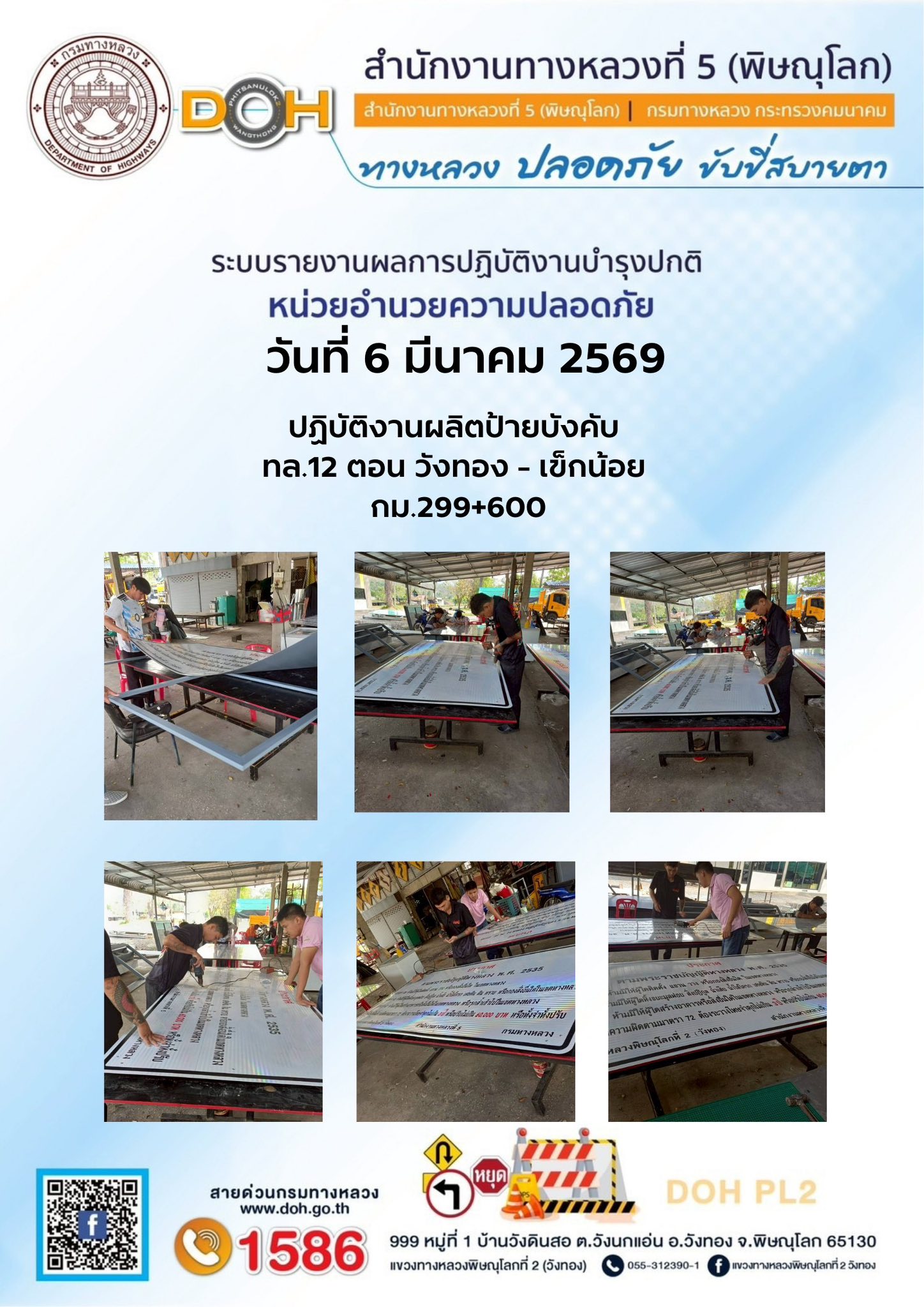 การปฏิบัติงานของ หมวดทางหลวง และ หน่วยงานในสังกัด เพื่ออำนวยความสะดวก และปลอดภัยให้กับประชาชนผู้ใช้เส้นทาง ประจำวันศุกร์ ที่ 6 กุมภาพันธ์ 2569