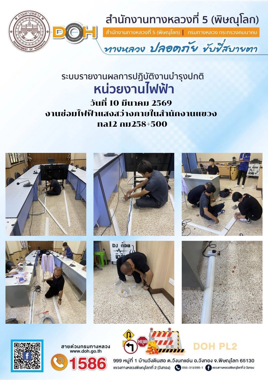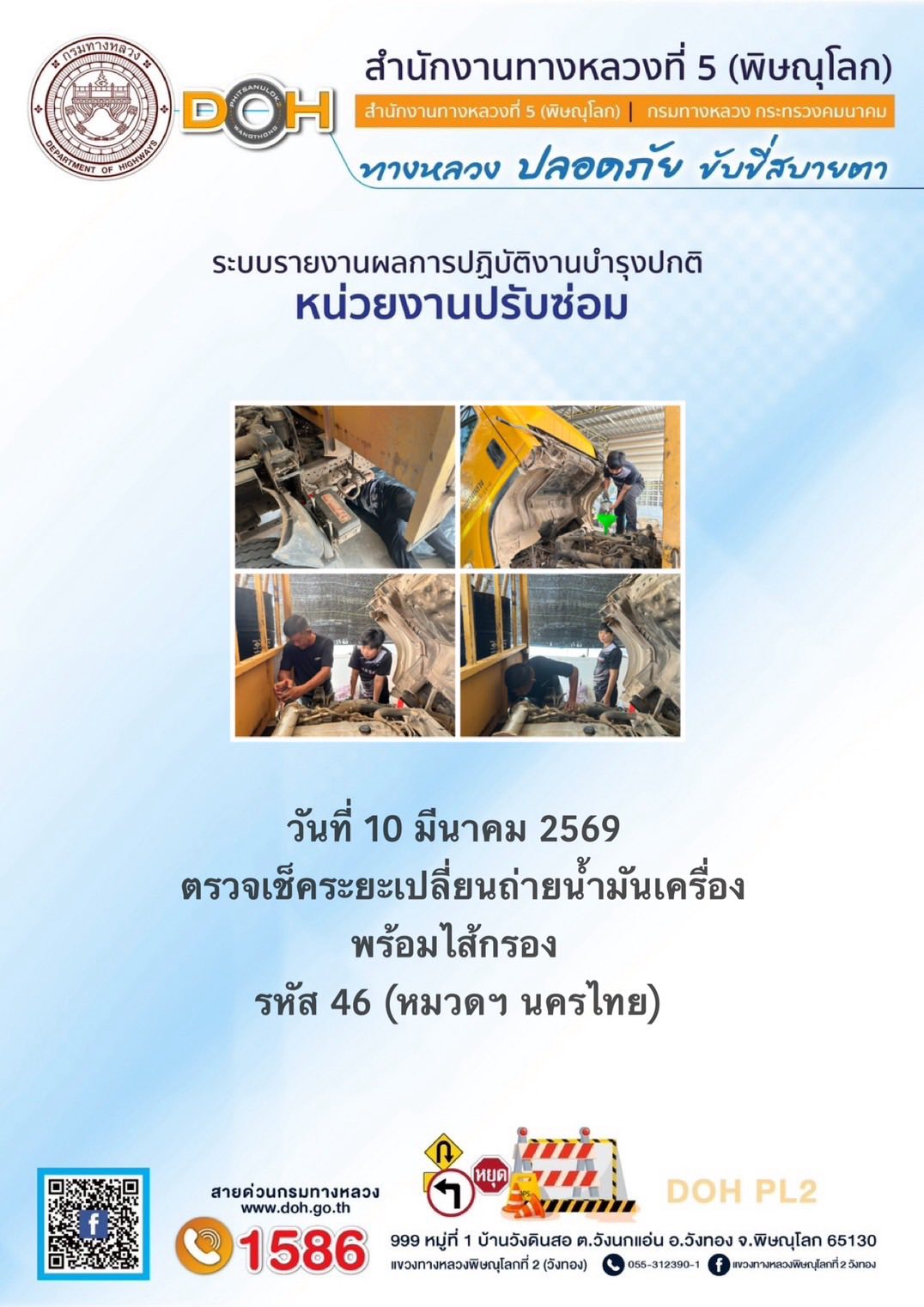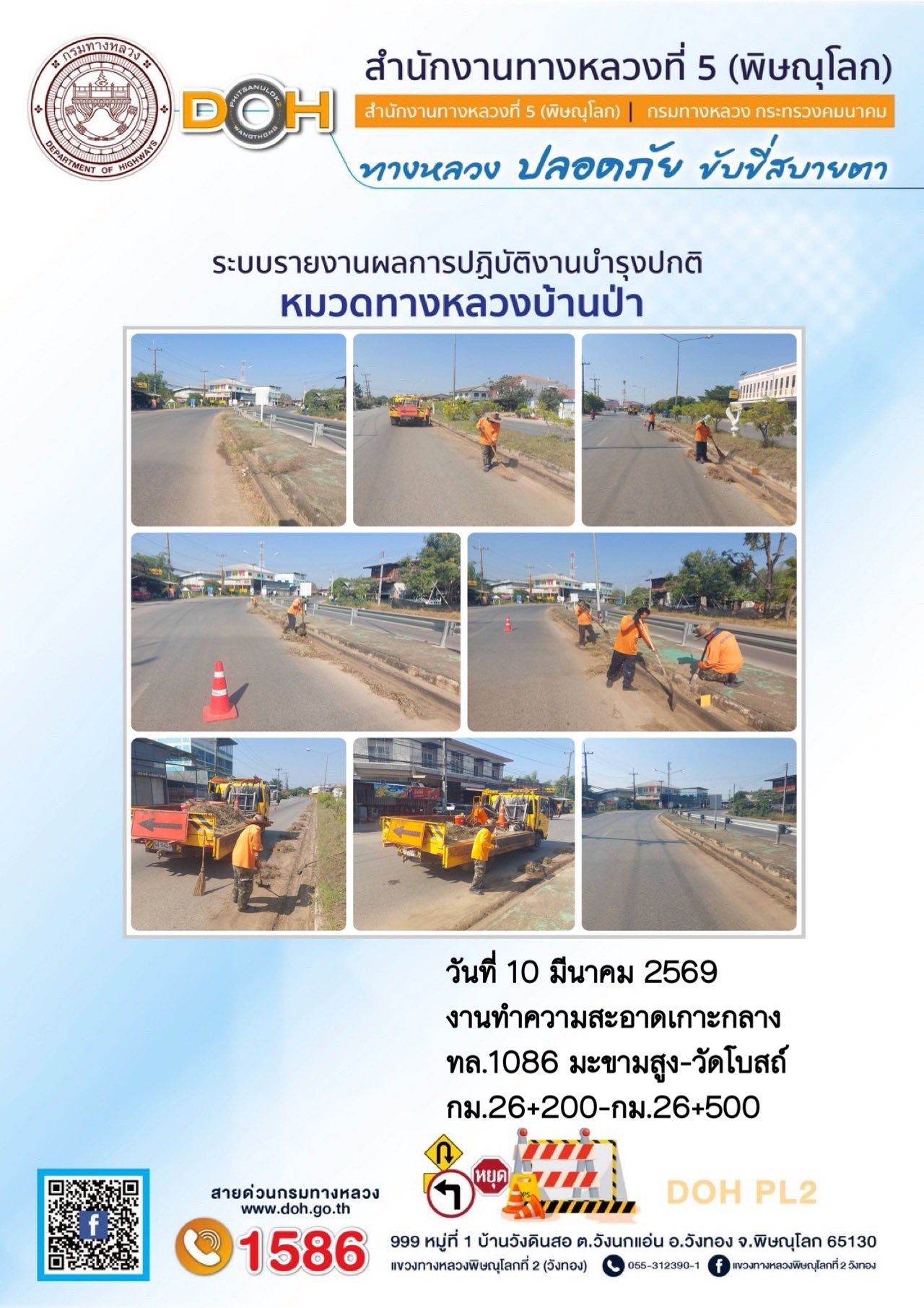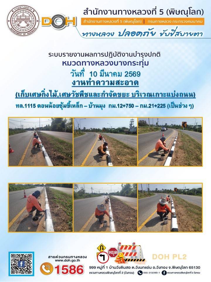 การปฏิบัติงานของ หมวดทางหลวง และ หน่วยงานในสังกัด เพื่ออำนวยความสะดวก และปลอดภัยให้กับประชาชนผู้ใช้เส้นทาง ประจำวันอังคาร ที่ 10 กุมภาพันธ์ 2569