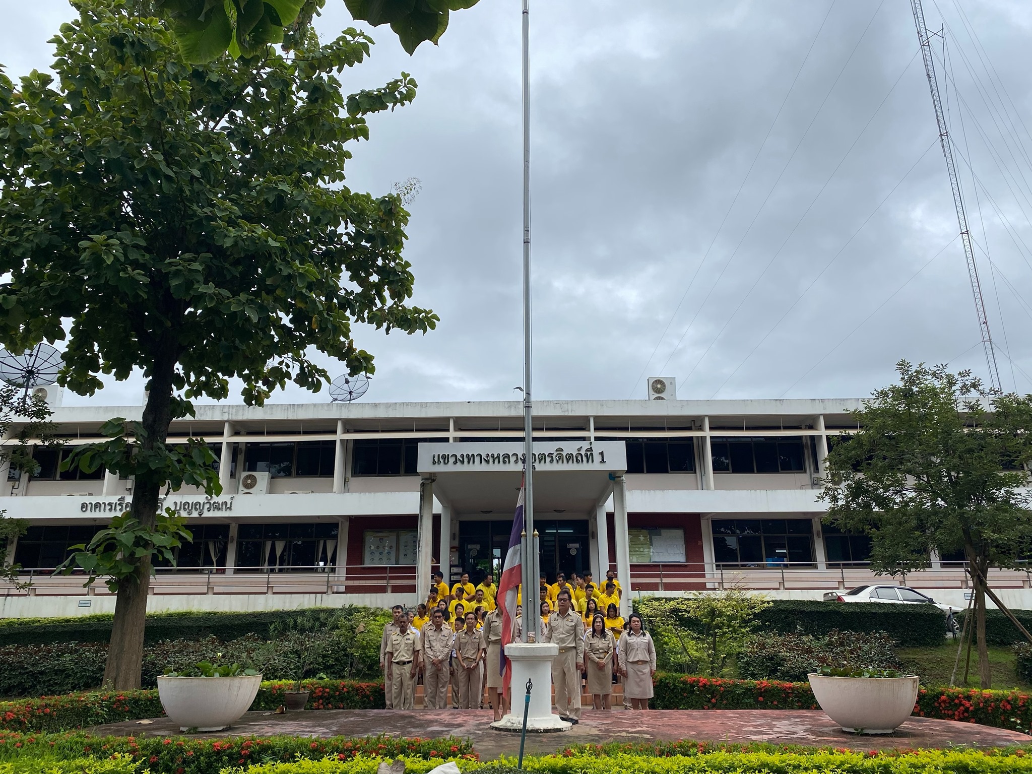 ร่วมร้องเพลงและเคารพธงชาติ เนื่องในวันพระราชทานธงชาติไทย ณ แขวงทางหลวงอุตรดิตถ์ที่ 1