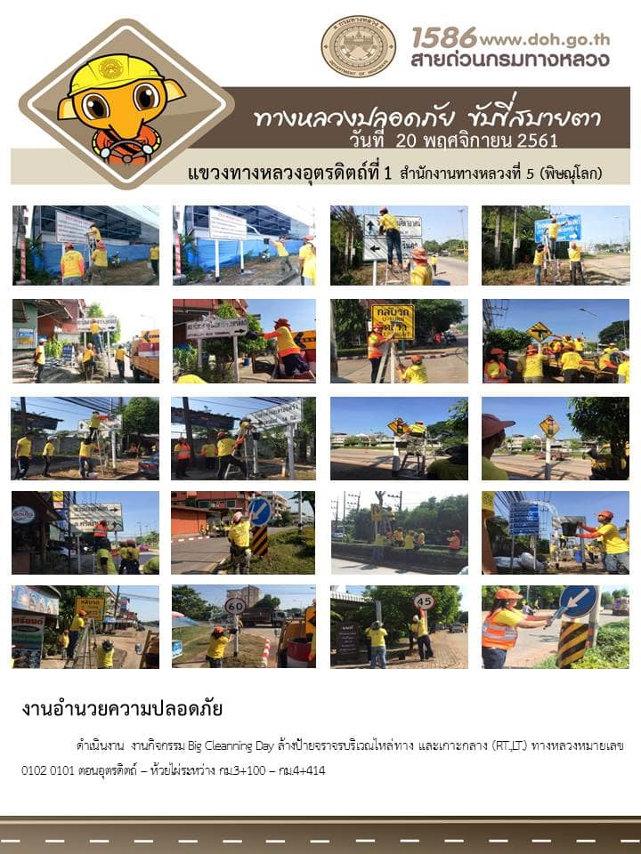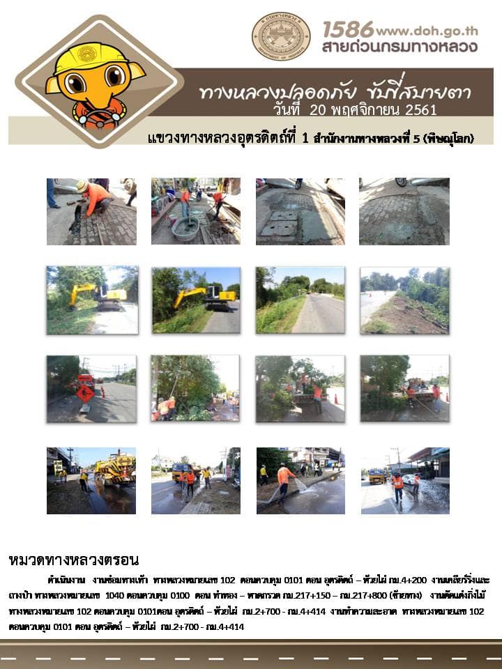 ผลงานการปฏิบัติงาน "ทางหลวงปลอดภัย ขับขี่สบายตา" ของแขวงทางหลวงอุตรดิตถ์ที่ 1 ประจำวันที่ 20 พฤศจิกายน 2561 โดยหมวดทางหลวงในสังกัด ปฏิบัติงานในพื้นที่ในเขตรับผิดชอบ????พบเห็นผิวทางชำรุด??????ไฟฟ้าแสงสว่างทางหลวงดับไฟสัญญาณจราจรขัดข้อง ติดต่อสอบถาม โทร.055-411005 เราชาวแขวงทางหลวงอุตรดิตถ์ที่ 1 พร้อมให้บริการ