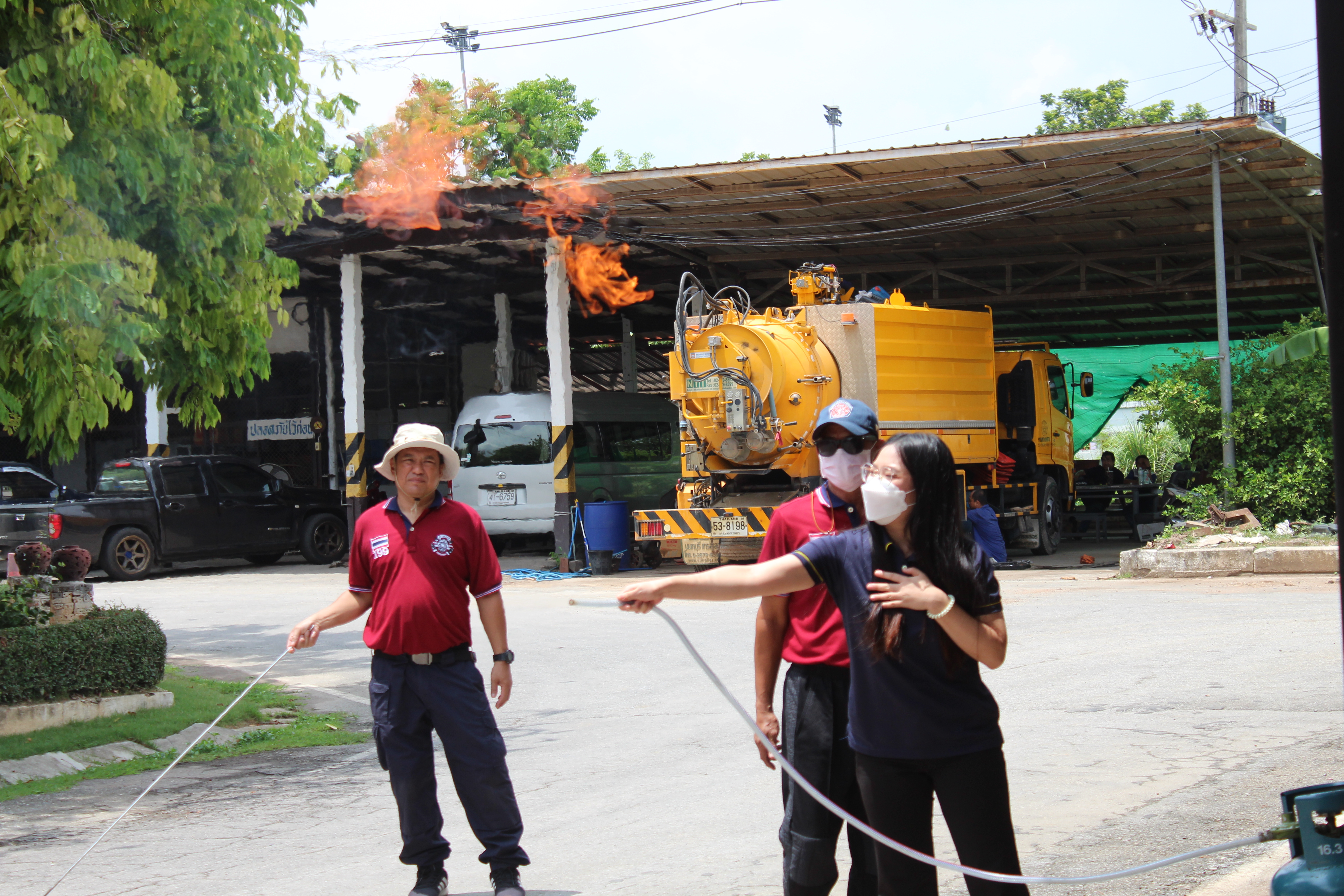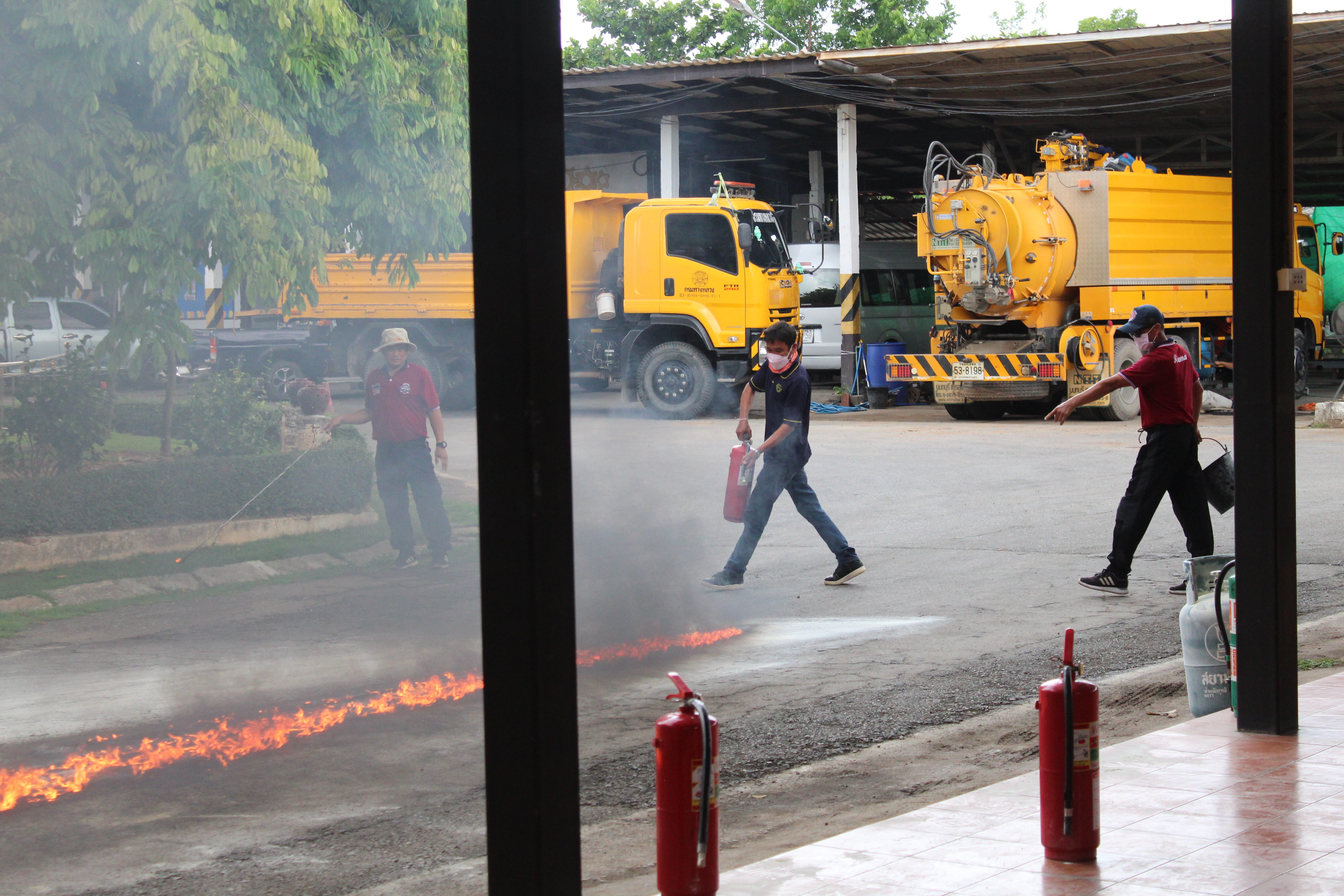 พร้อมรองผู้อำนวยการฯฝ่ายปฎิบัตการ ฝ่ายวิศวกรรม ฝ่ายบริหาร ข้าราชการและเจ้าหน้าที่แขวงฯในสังกัด ร่วมกิจกรรมอบรมการดับเพลิงเบื้องต้นและการปฐมพยาบาลเบื้องต้น