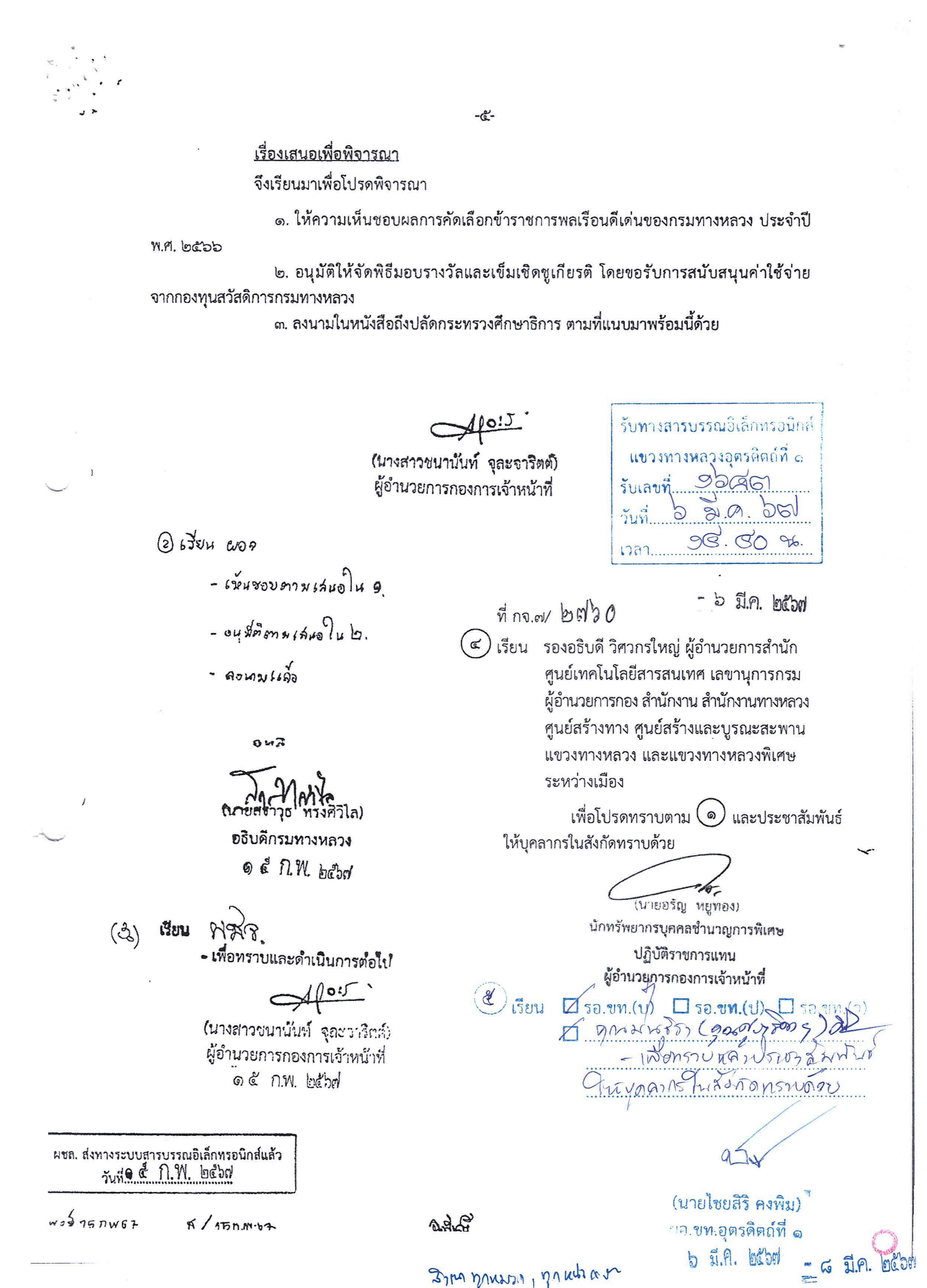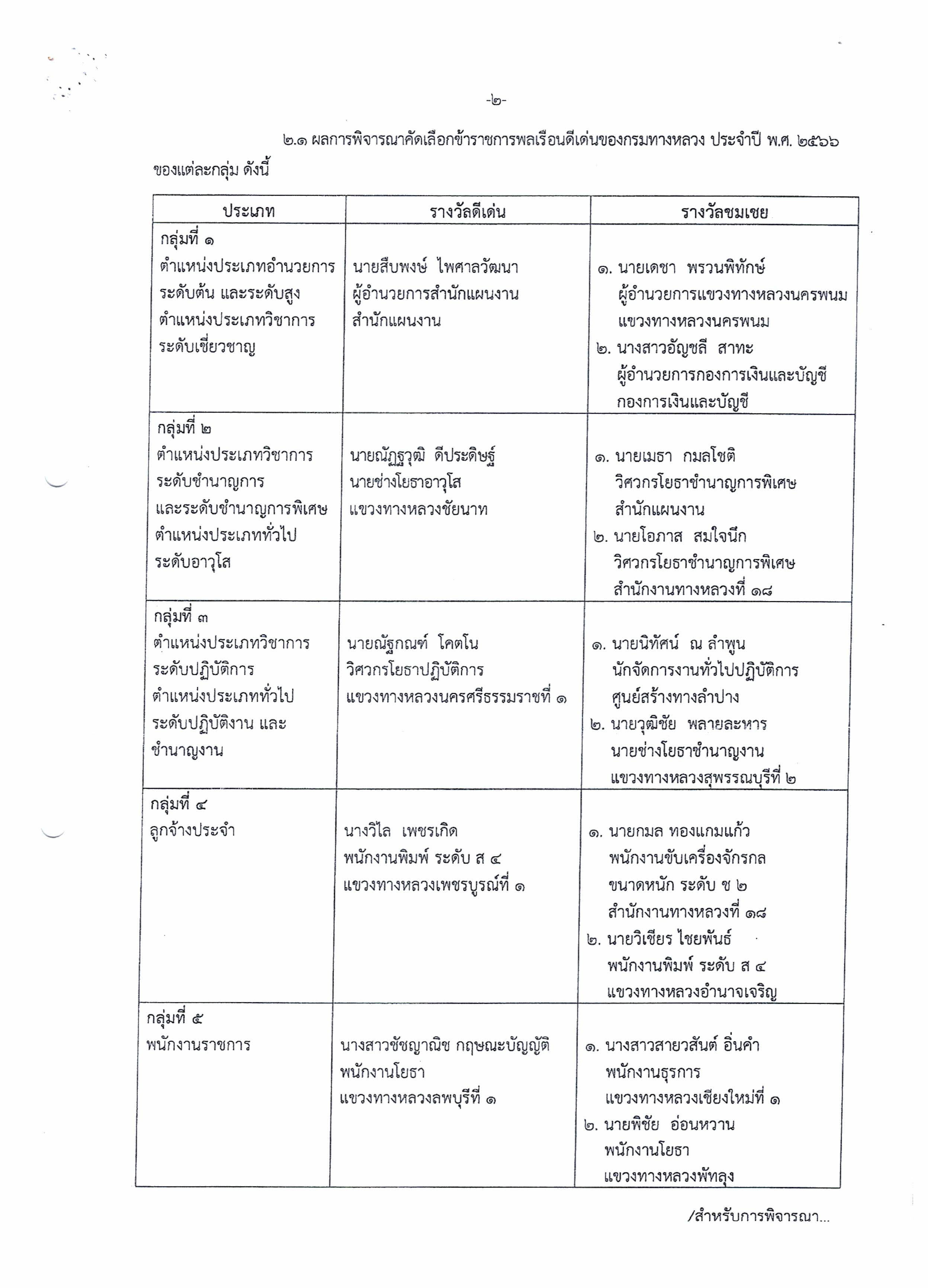 แขวงทางหลวงอุตรดิตถ์ที่ 1 ประชาสัมพันธ์ผลการคัดเลือกข้าราชการพลเรือนดีเด่นของกรมทางหลวง ประจำปี พ.ศ. 2566