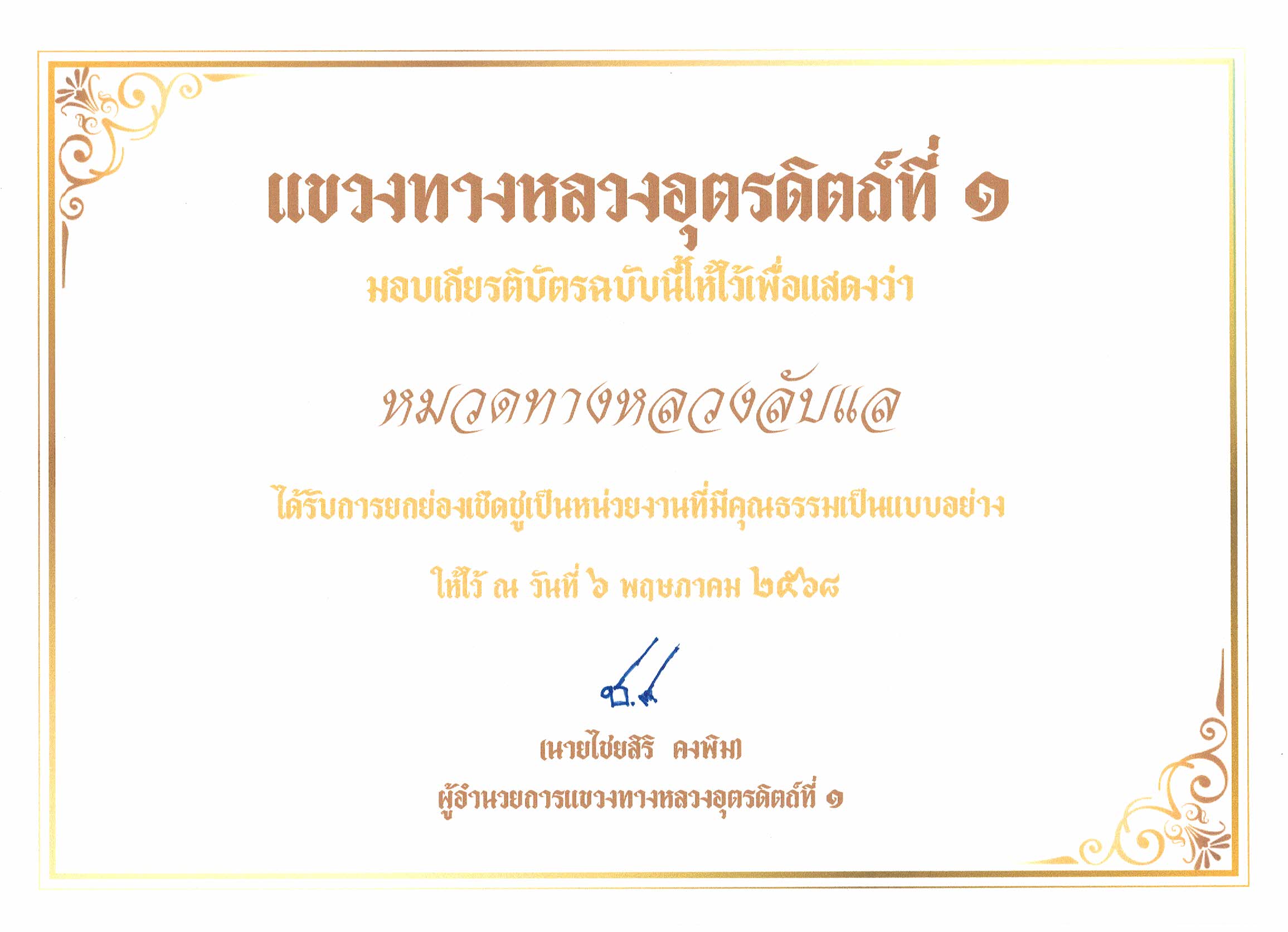 ที่มีคุณธรรมเป็นแบบอย่าง ประจำปี พ.ศ.2568 ได้แก่ "หมวดทางหลวงลับแล"