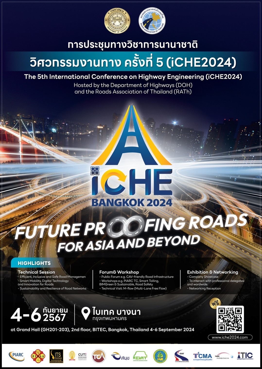 ร่วมกันจัดงานการประชุมทางวิชาการนานาชาติวิศวกรรมงานทาง ครั้งที่ 5 : The 5th International Conference on Highway Engineering ( iCHE 2024 ) ภายใต้แนวคิด Future - proofing Roads for Asia and Beyond ซึ่งจะจัดขึ้นในวันที่ 4 - 6 กันยายน 2567 ณ ศูนย์นิทรรศการและการประชุมไบเทค บางนา กรุงเทพมหานคร